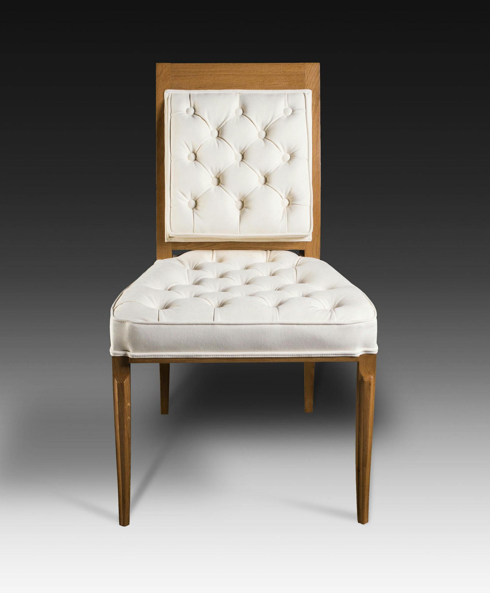 A complete dining-room set with a console, a dining table, six chairs, two armchairs, two sconces and a chandelier, providing our design studio the opportunity to showcase its creative identity.