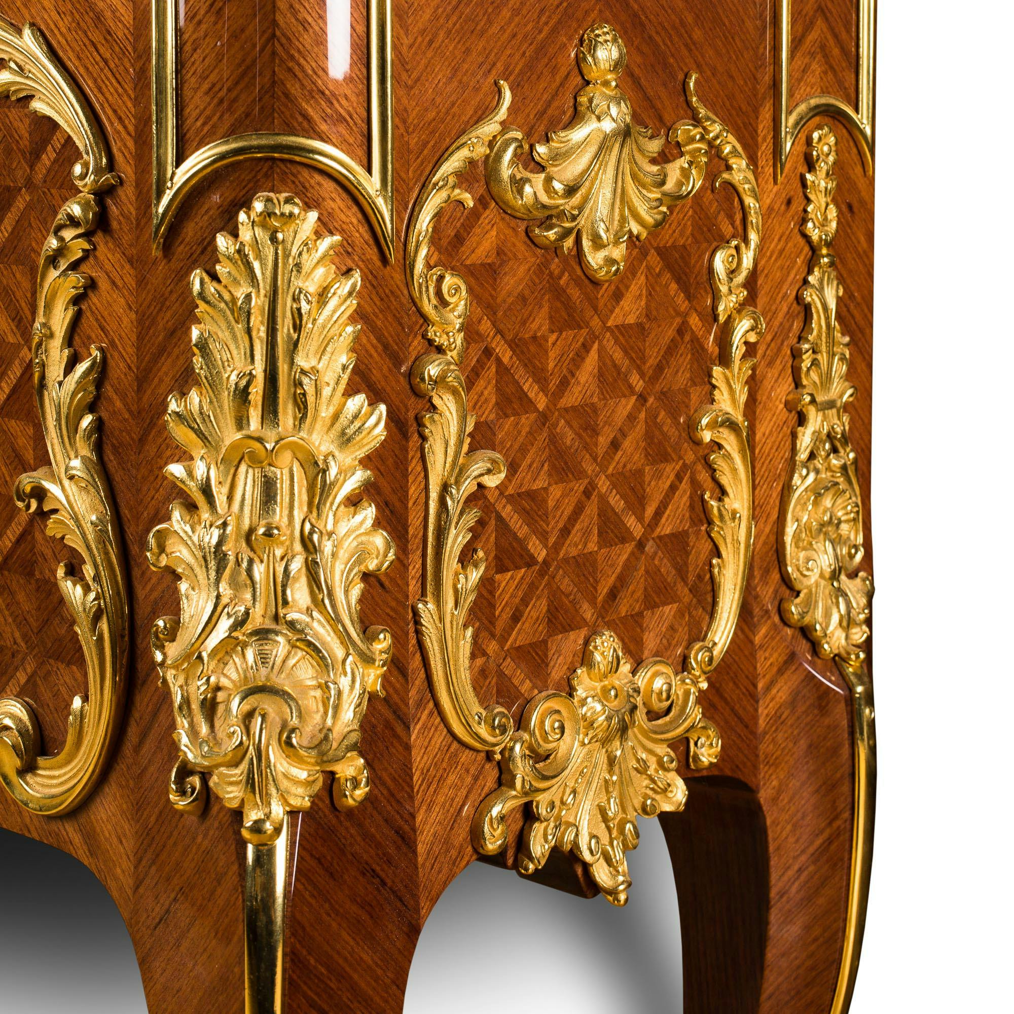 Louis XV style silver cabinet with Madagascar rosewood veneer, marble and gilded chased bronzes.