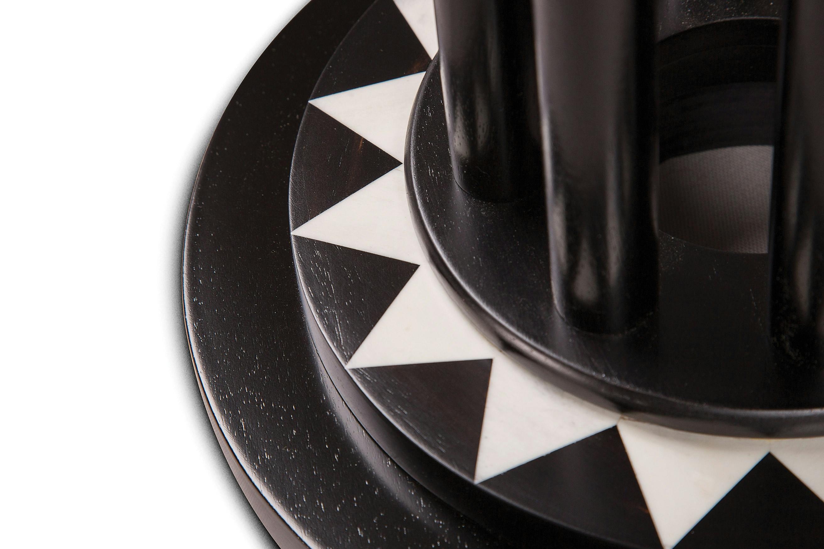 End table with wenge turned colums, shagreen and ebony marquetry, inlaid bone and varnish finishing.