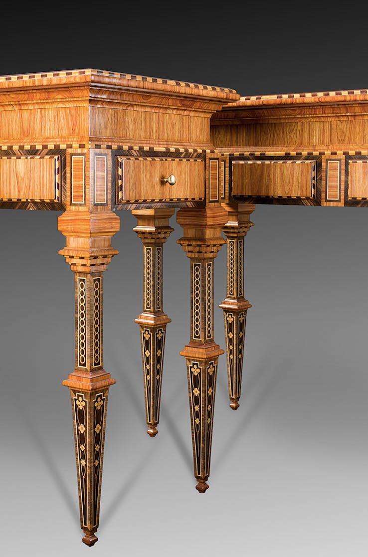 The professionals in our design studio, masters of the history and hallmarks of luxury furniture, annually design one full contemporary collection, along with many bespoke pieces for exacting connoisseurs and collectors. This expertise builds upon more than 180 years of design work in the most varied styles, creating hand-in-hand with our group’s in-house workshops. Possessing such comprehensive knowledge of materials and finishes, our furniture-design teams are wholly at ease devising the most complex pieces of furniture using wood, stone, leather, precious stones, both wood and straw marquetry, and even metal.