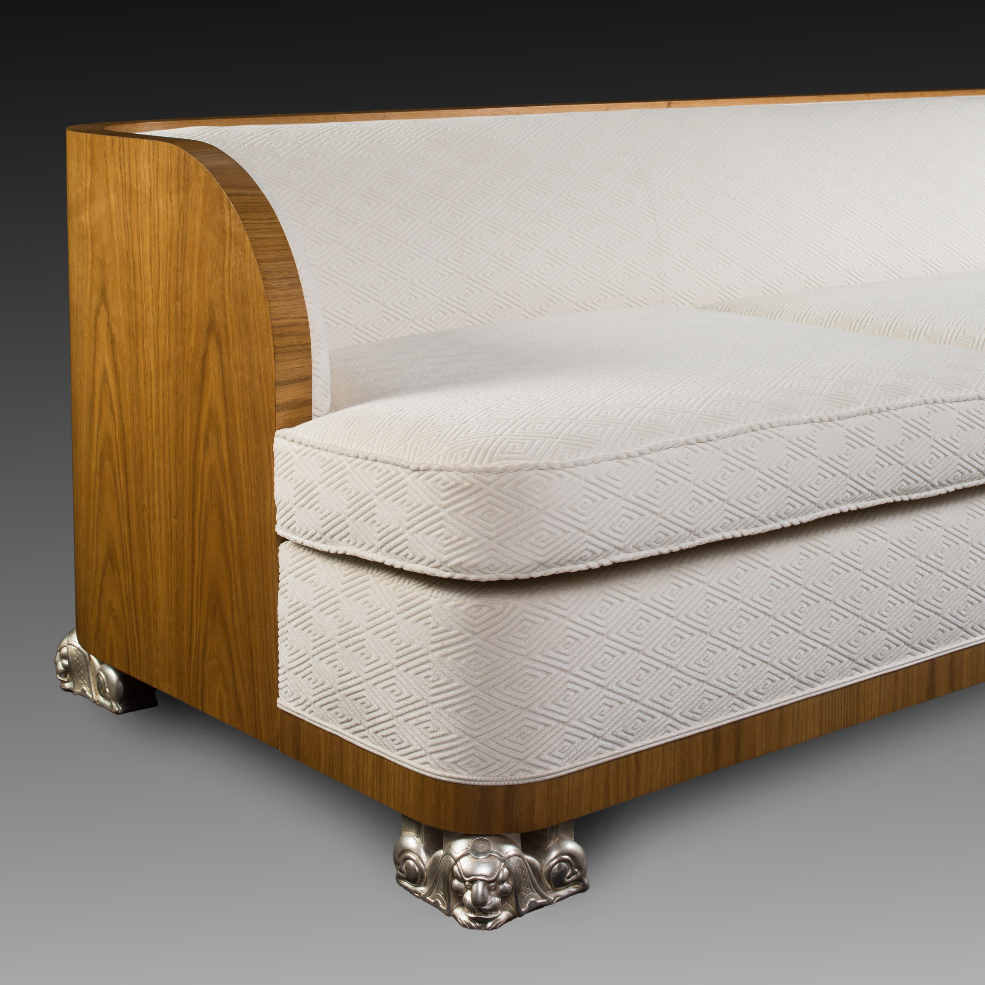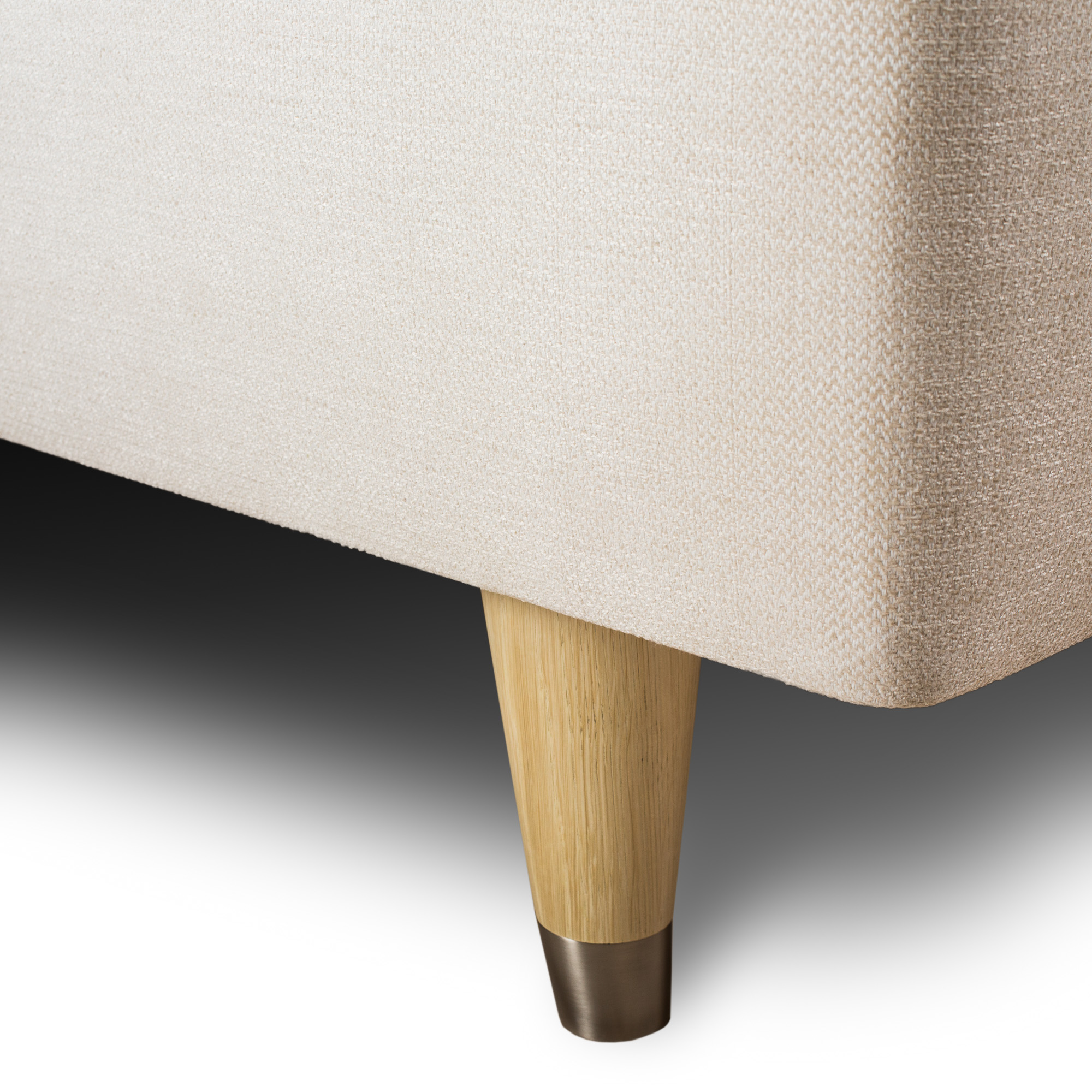 Fully ulpholsetered large bench with turned oak feet and matt nickel sabot.