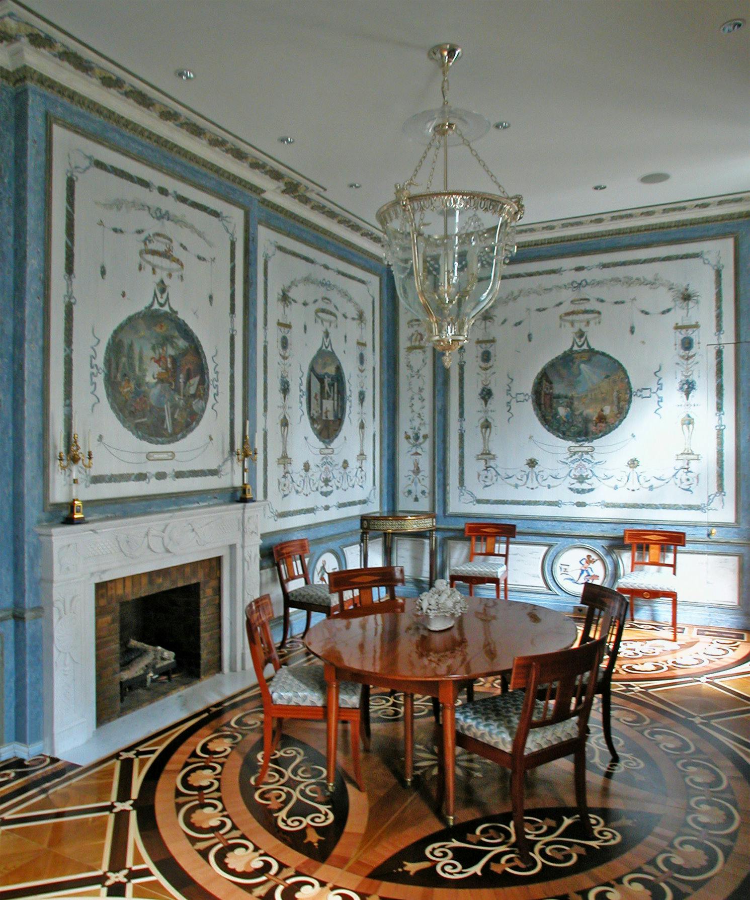 Rinck work on the Mahogany millwork for this dining room project of a Park avenue apartment in New York.