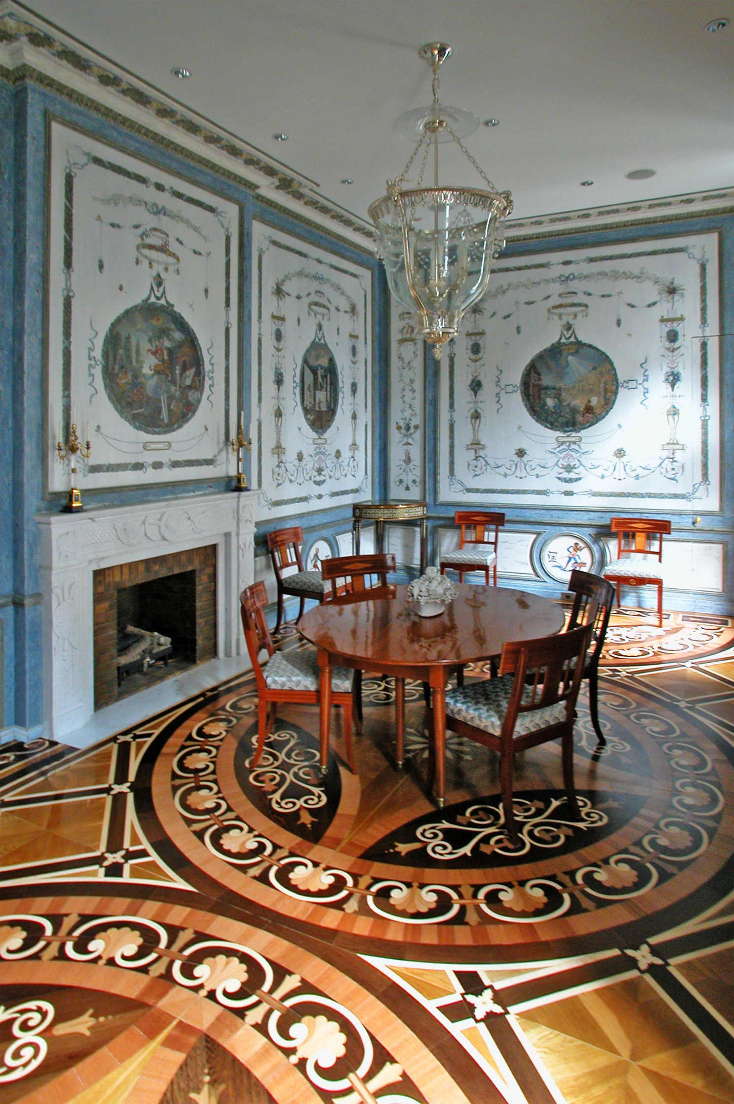 Rinck work on the Mahogany millwork for this dining room project of a Park avenue apartment in New York.