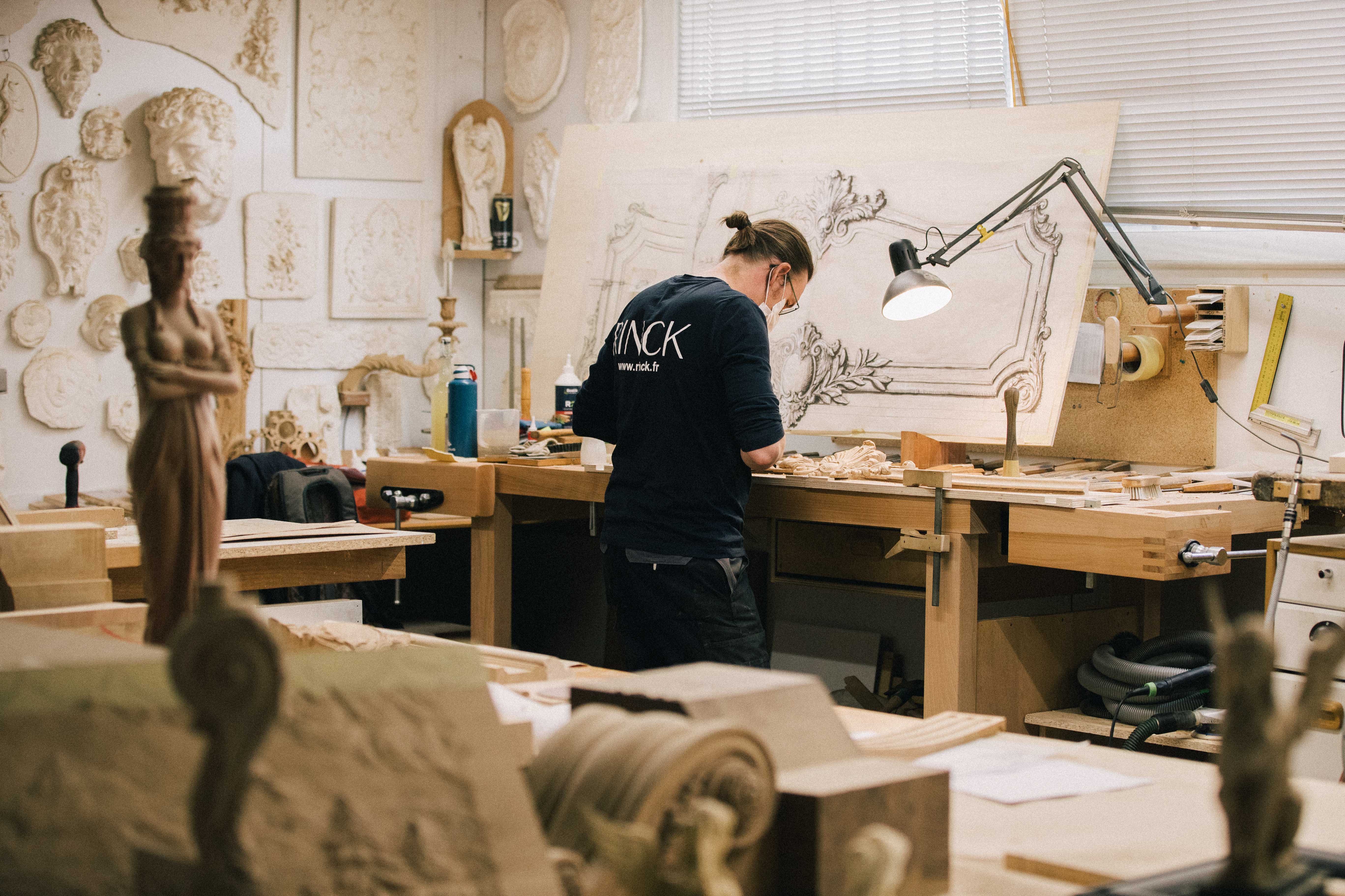 Today’s tools produce marquetry of great finesse and precision, allowing for a rich palette of materials applied in infinite variations. It can incorporate a wide variety of woods, such as various rosewoods or kingwood, amaranth, ebony, or even mahogany. By sawing at any number of angles and in any number of thicknesses, with, against, or across the grain, our craftspeople can create extremely diverse decorations, such as floral bouquets, geometric veneers in cubes, stars, or mosaics that become veritable abstract or figurative tableaux.