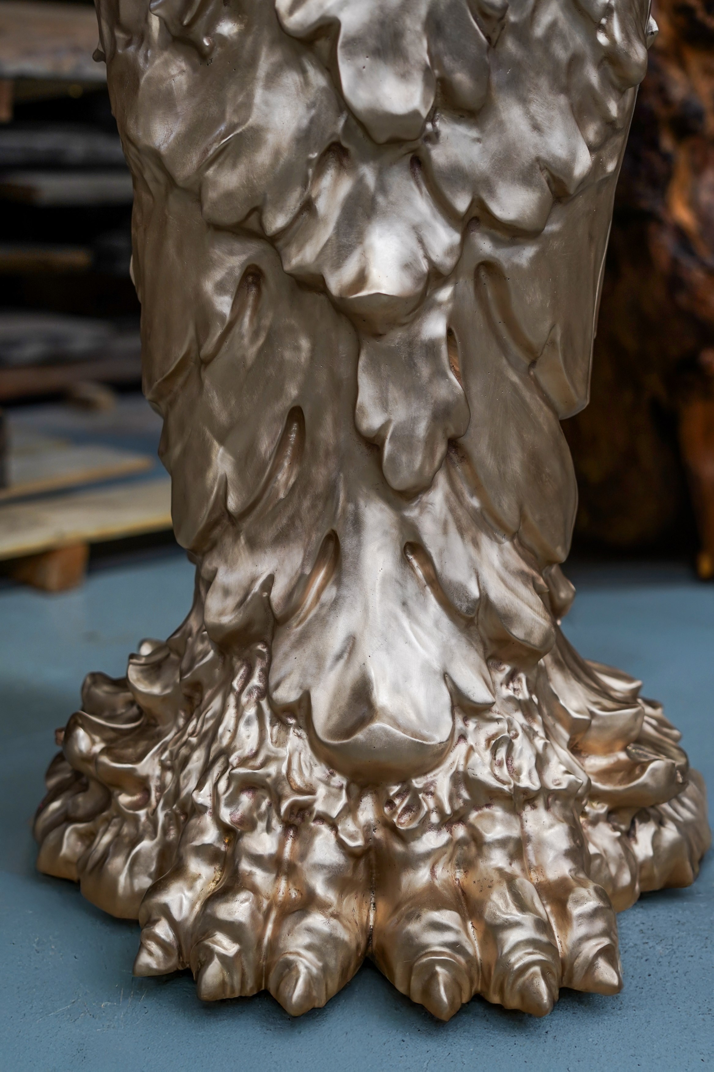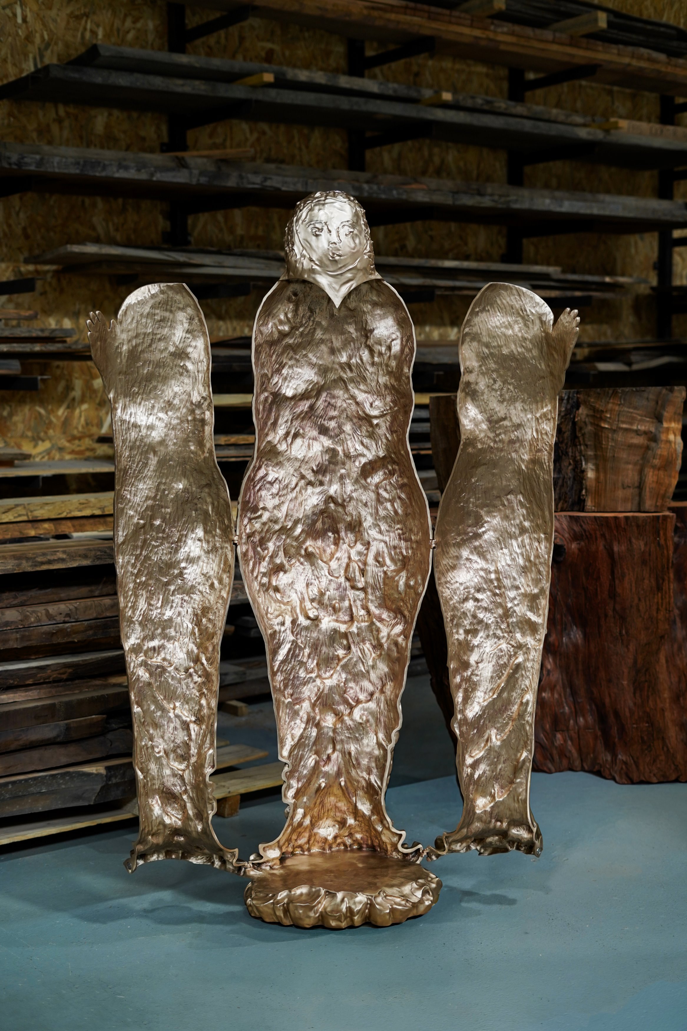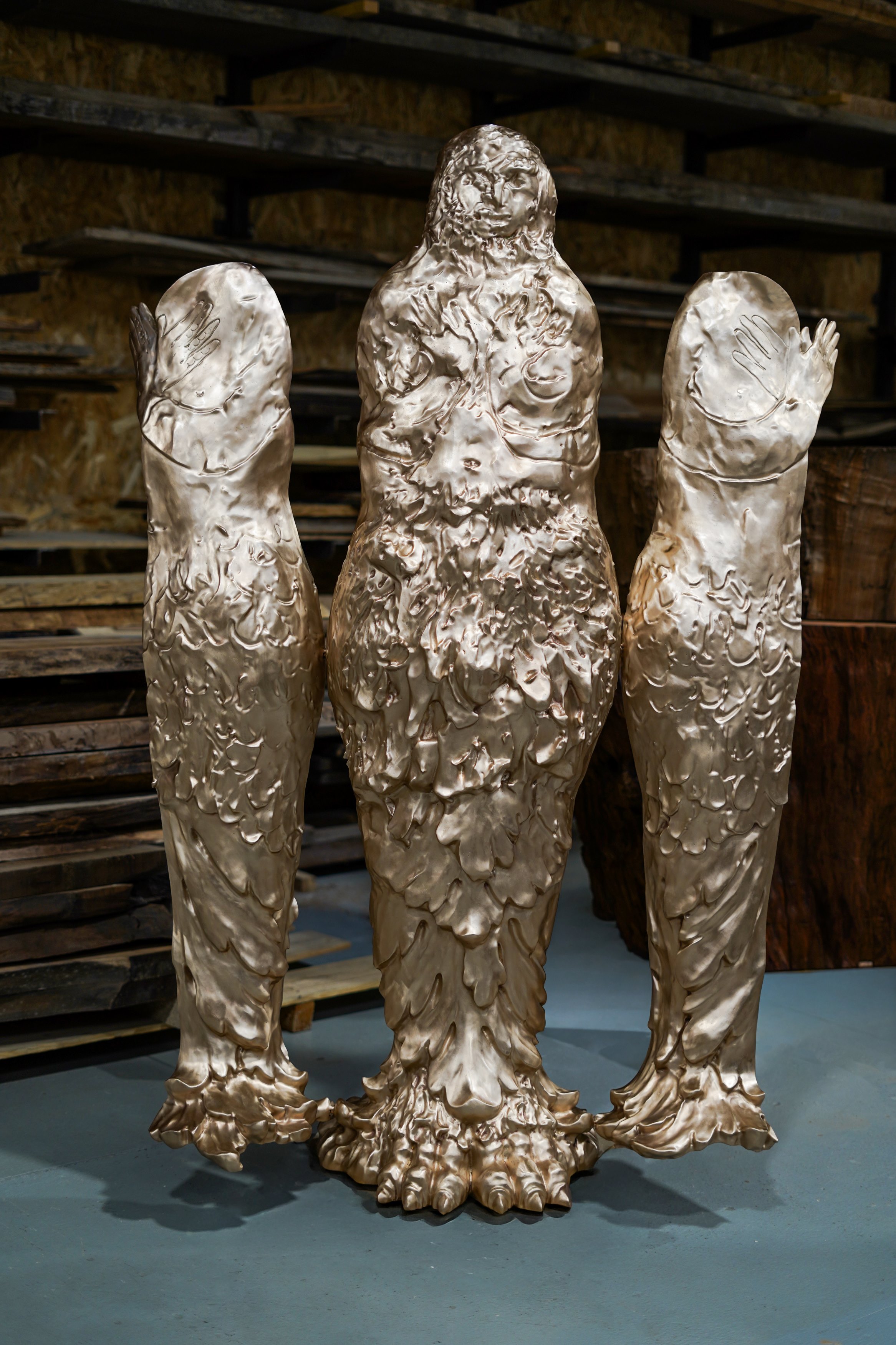 Conceived as the luminous echo of La Nuit, this second iteration of the monumental winged figure revisits the original form with a distinct presence. In Le Jour, the deep black patina gives way to a polished golden bronze finish, bringing a new energy — radiant, sensual, and open.