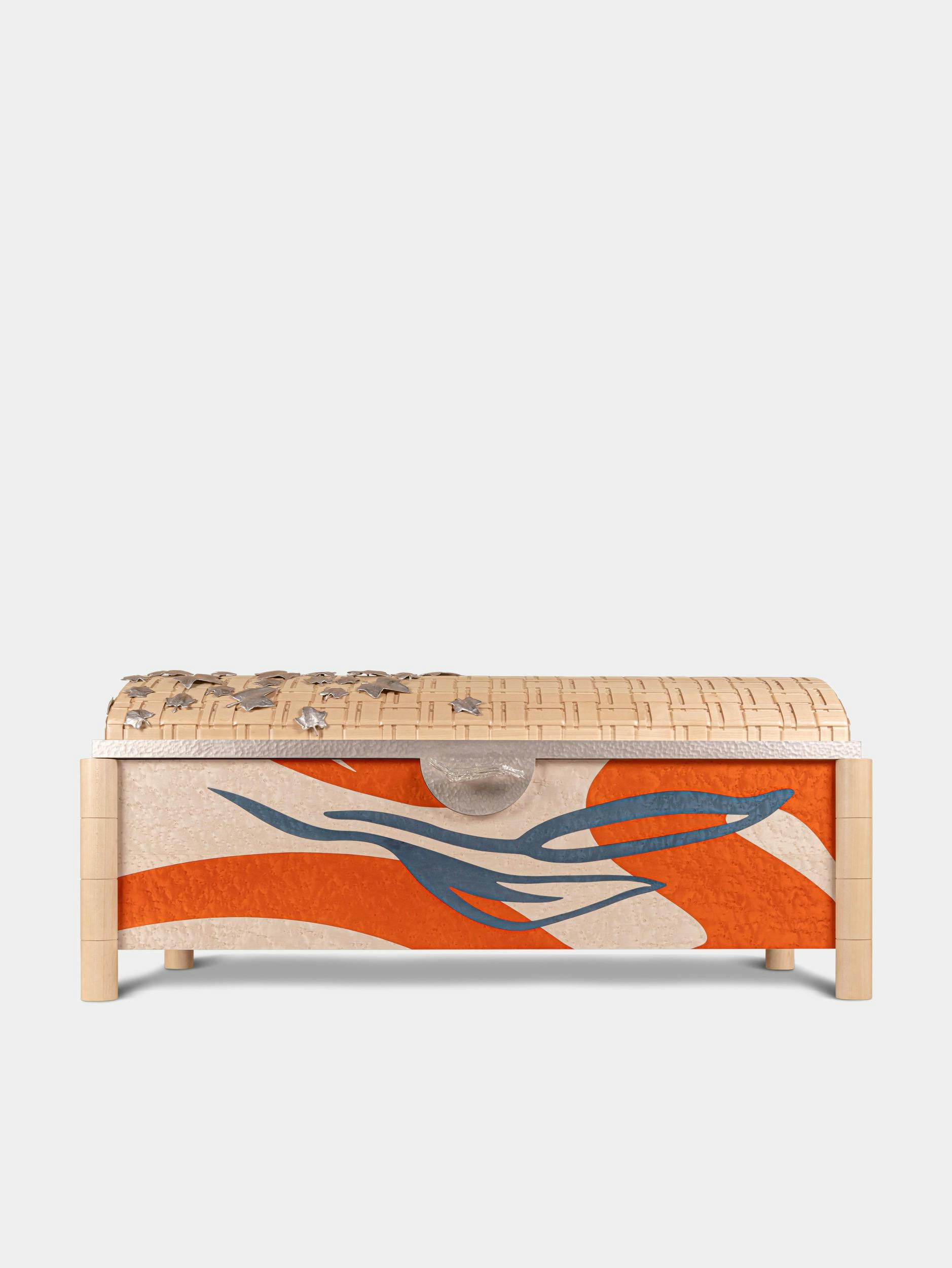 By featuring raw wood, or by imitating nature with trompe-l'oeil painting recalling onyx, the collection’s elements tease and intrigue the observer. Vegetation is invited to reclaim its rightful place, making this entrance to the home, this transition between two worlds, an embodiment of our uncertainty about our planet’s future, as questions of ecological disaster and climate crisis loom on the horizon.
