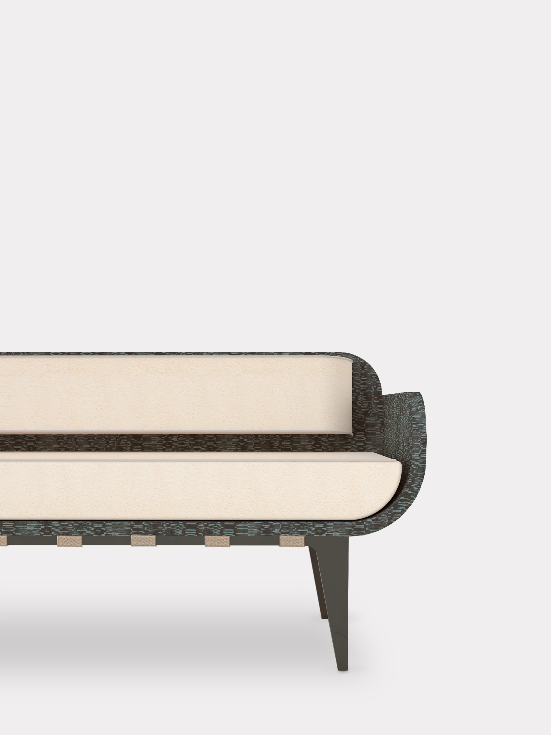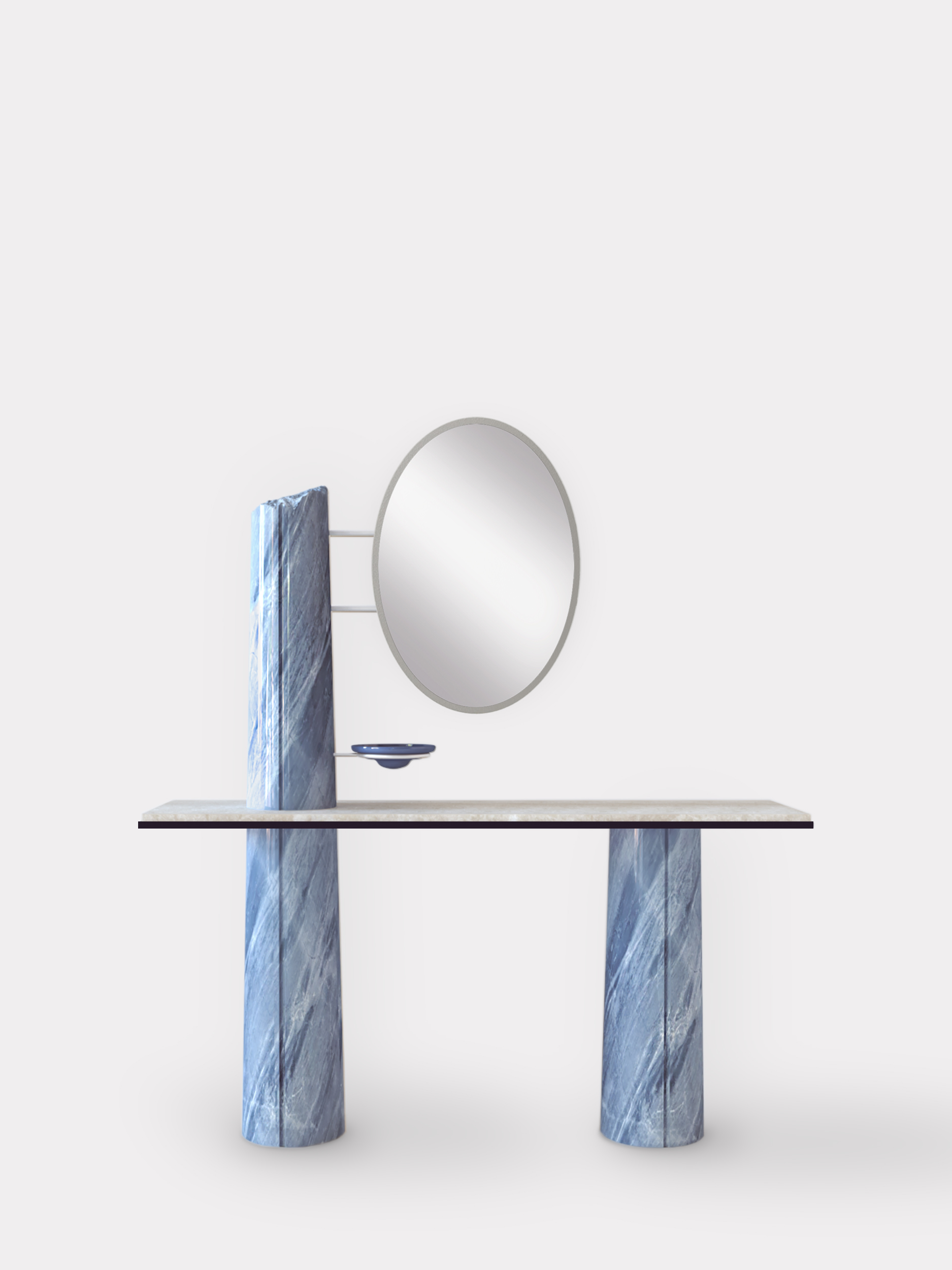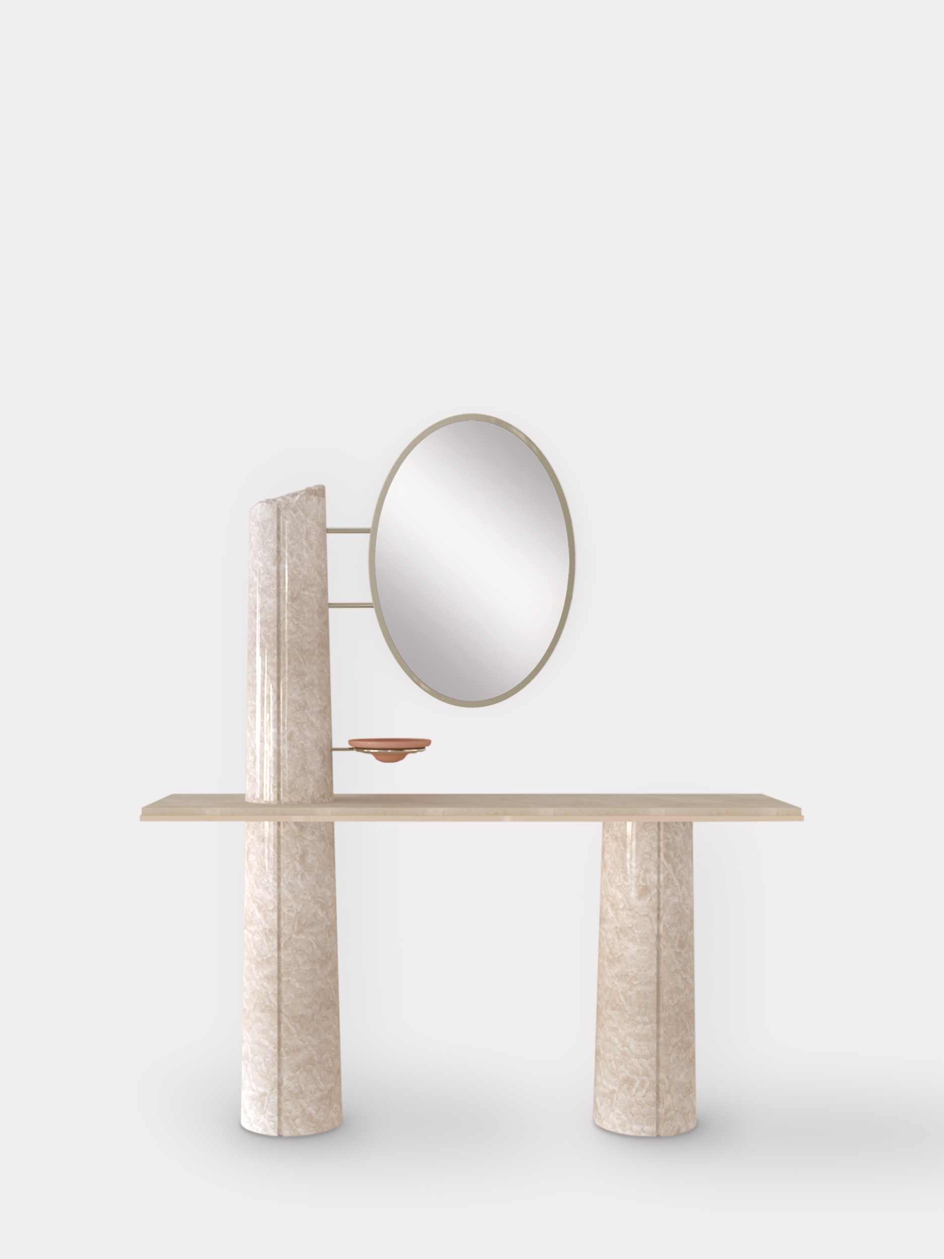 By featuring raw wood, or by imitating nature with trompe-l'oeil painting recalling onyx, the collection’s elements tease and intrigue the observer. Vegetation is invited to reclaim its rightful place, making this entrance to the home, this transition between two worlds, an embodiment of our uncertainty about our planet’s future, as questions of ecological disaster and climate crisis loom on the horizon.