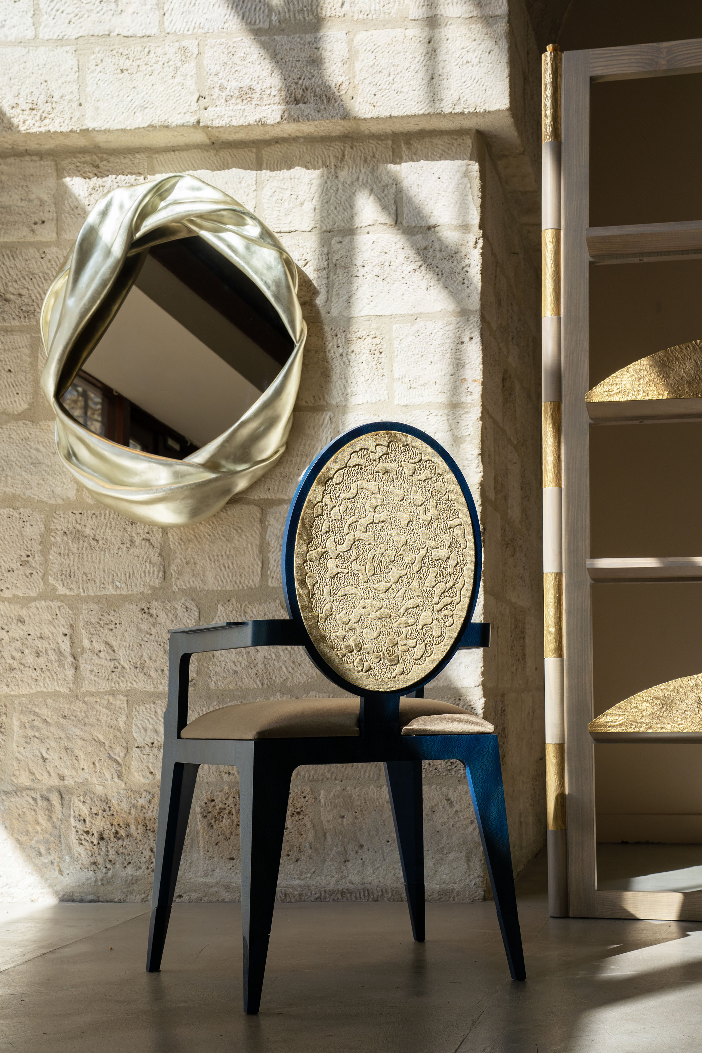 Inspired by the depths of the sea, the Nereus collection embodies the meeting of contemporary design and exceptional craftsmanship. With fluid reflections, sculpted materials, and textured surfaces, each piece evokes a fragment of an underwater landscape. Designed as a sensory immersion, the collection brings together solid wood, engraved glass, finely chiselled bronze, and haute couture textiles. Poetic and sculptural, Nereus is a celebration of fluidity, light, and movement.