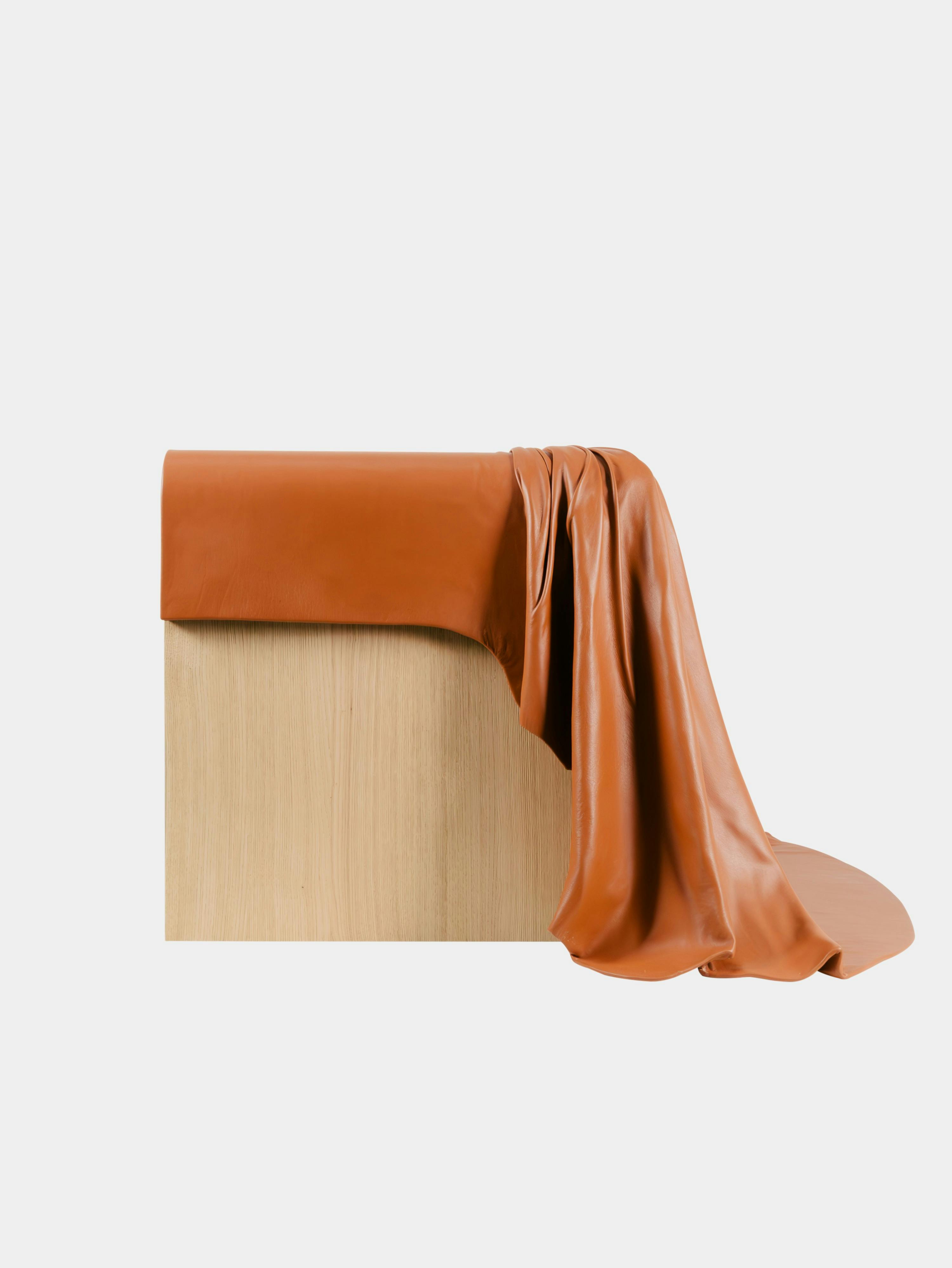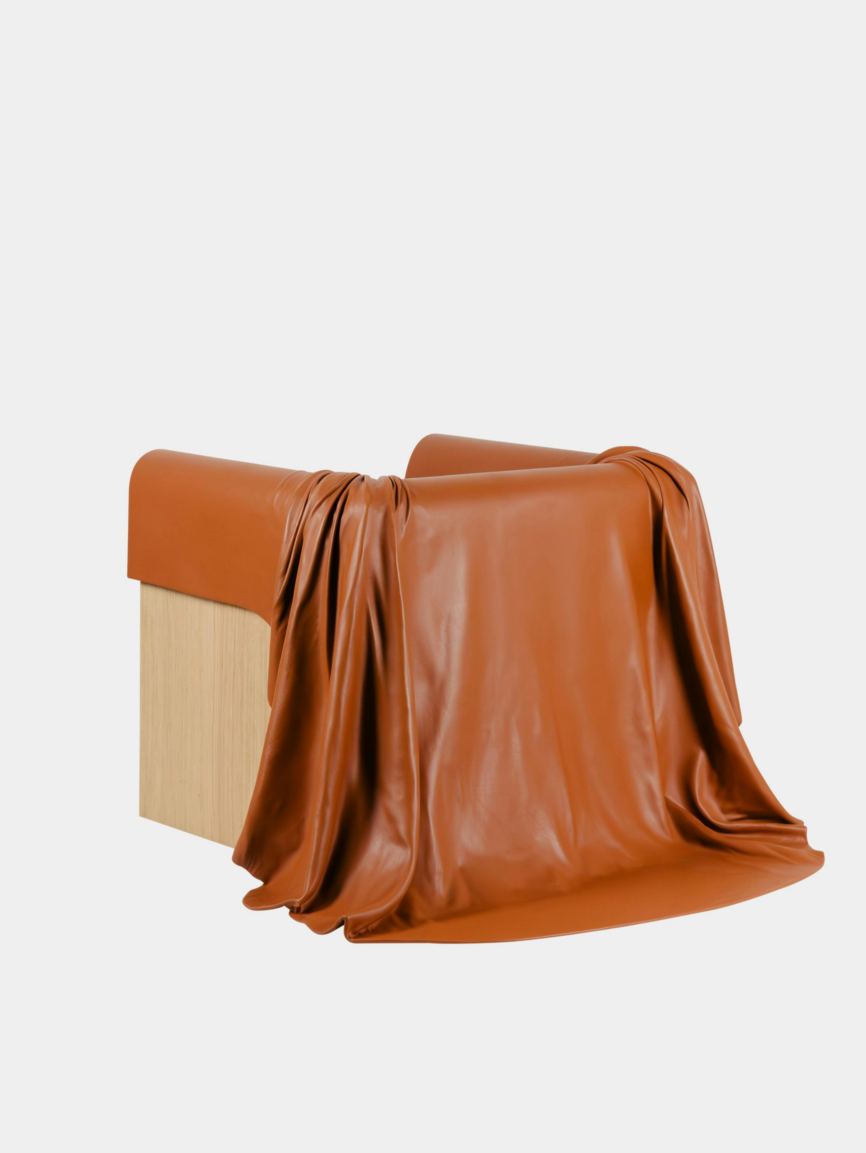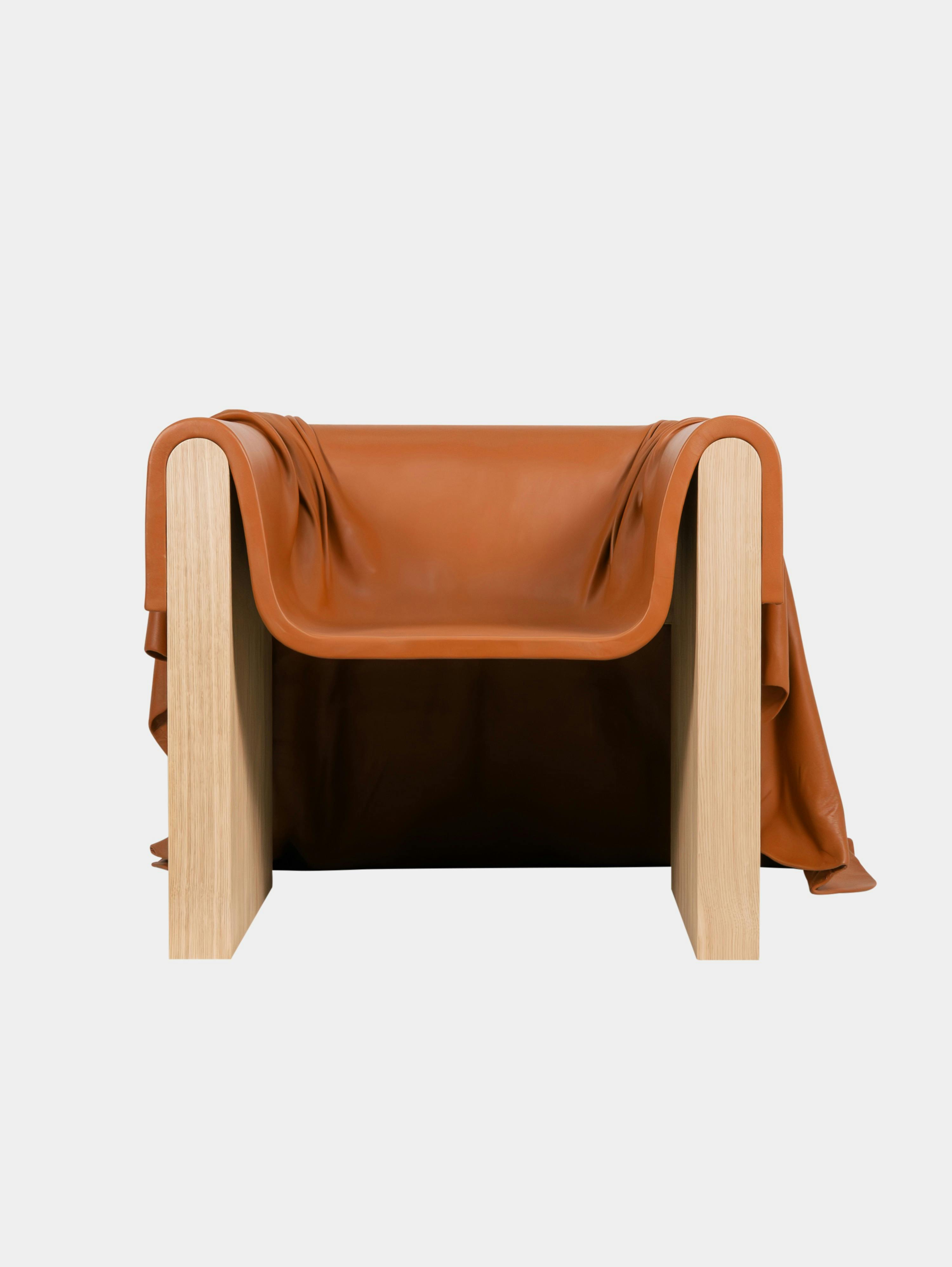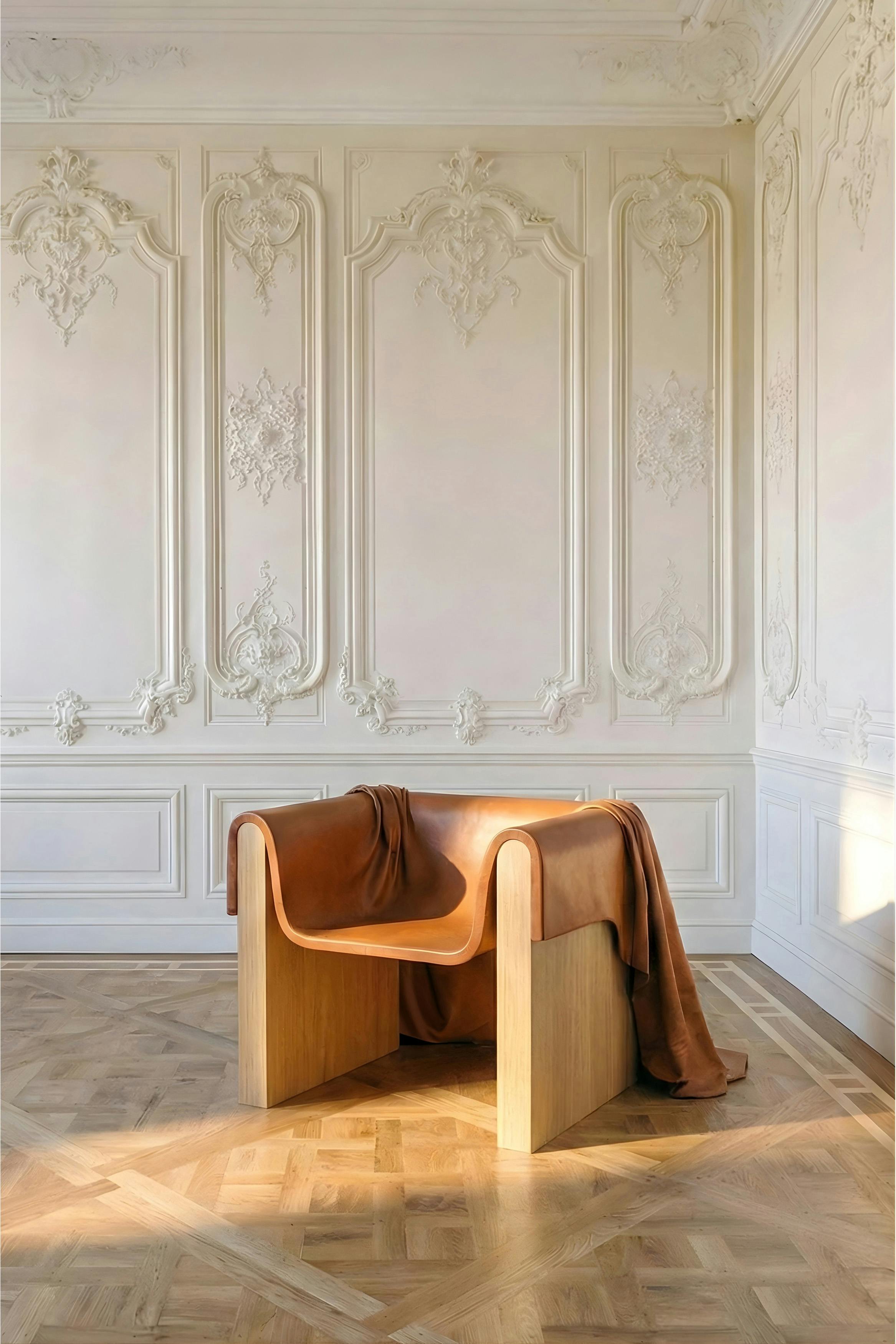 The throne armchair, a central component of the collection, is an imposing presence, a seat uniquely crafted to offer a variety of seating positions. The armchair unites a solid frame of sandblasted wood with a high-end leather covering draped like a royal train.