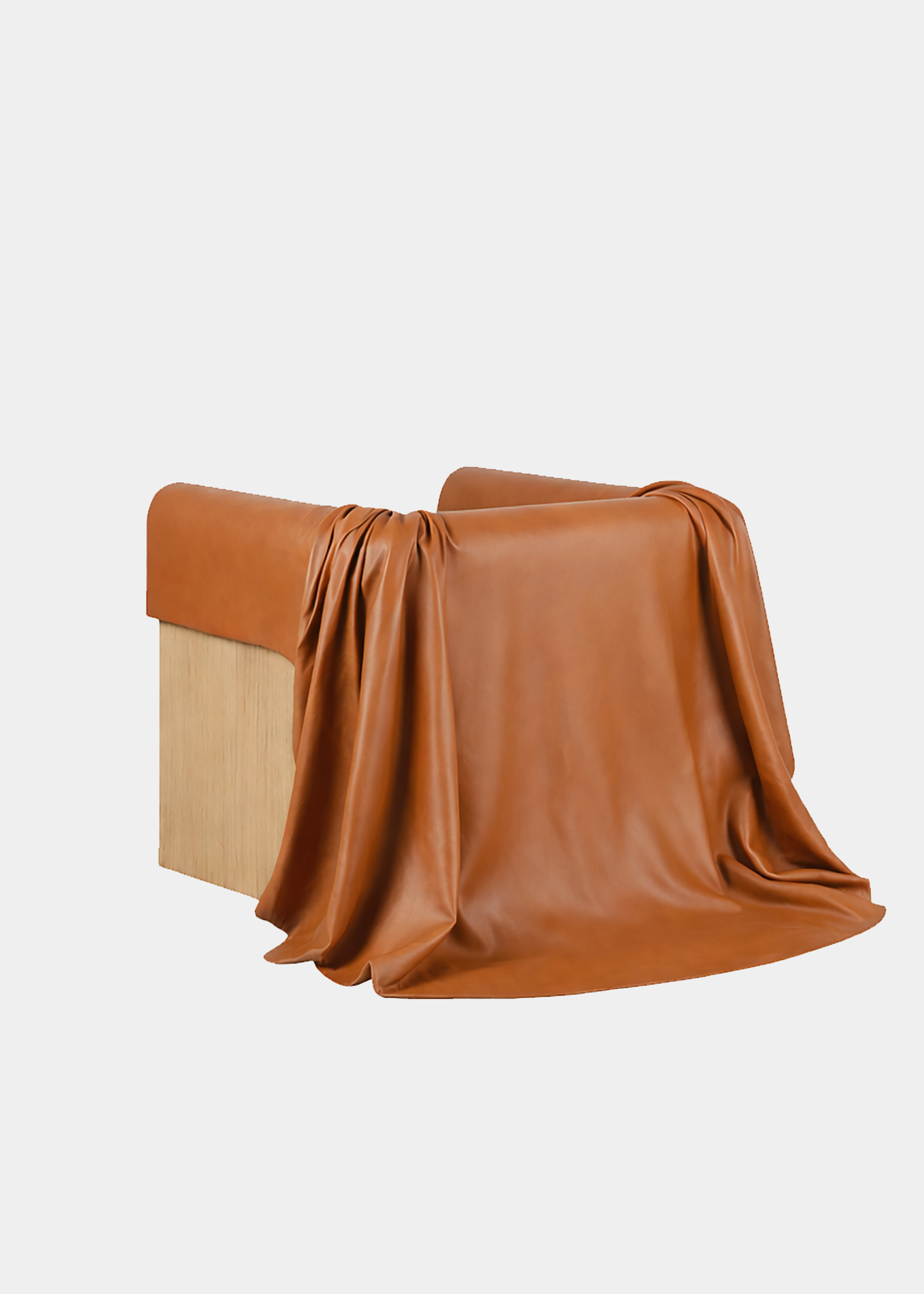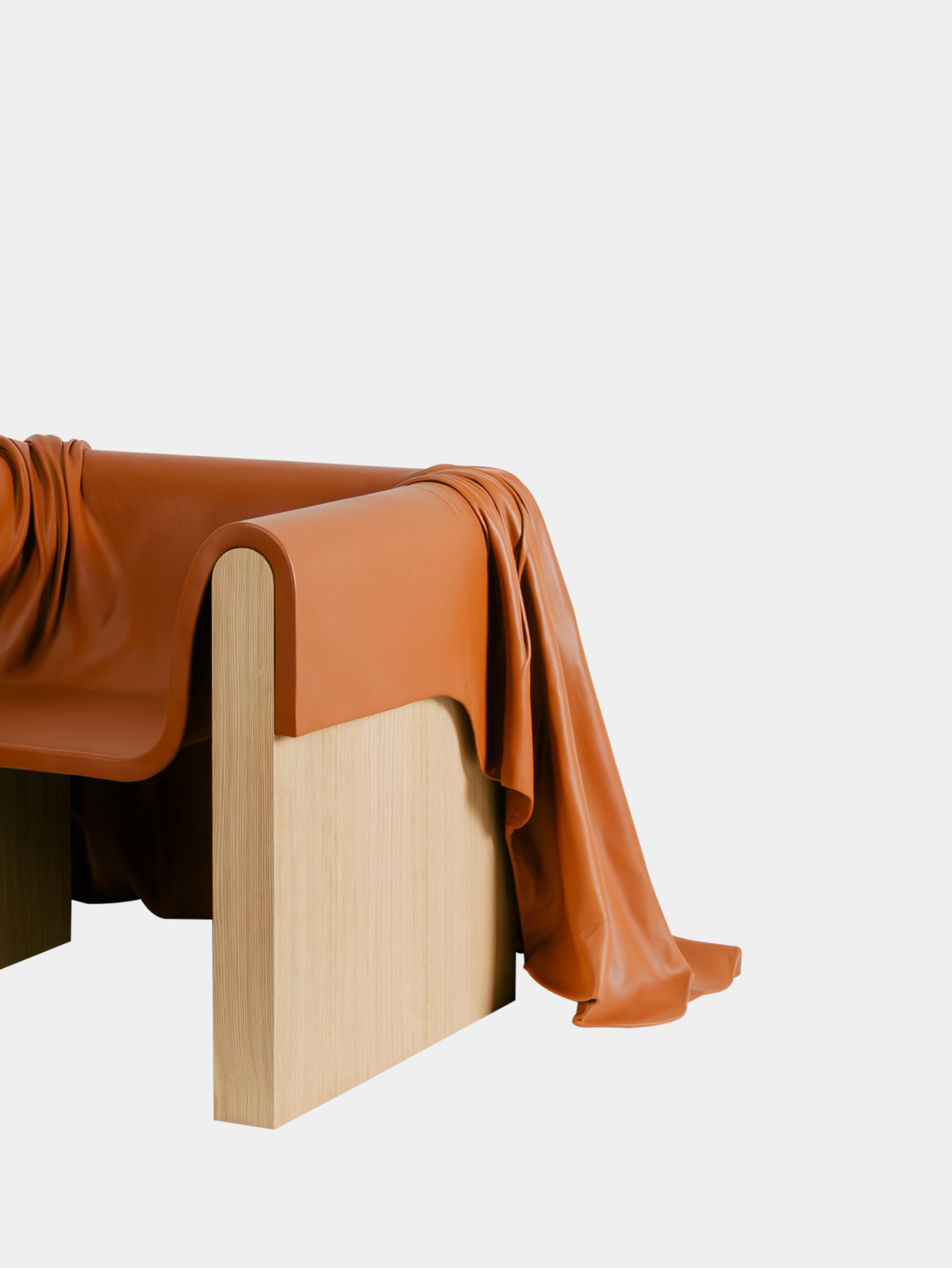 The throne armchair, a central component of the collection, is an imposing presence, a seat uniquely crafted to offer a variety of seating positions. The armchair unites a solid frame of sandblasted wood with a high-end leather covering draped like a royal train.