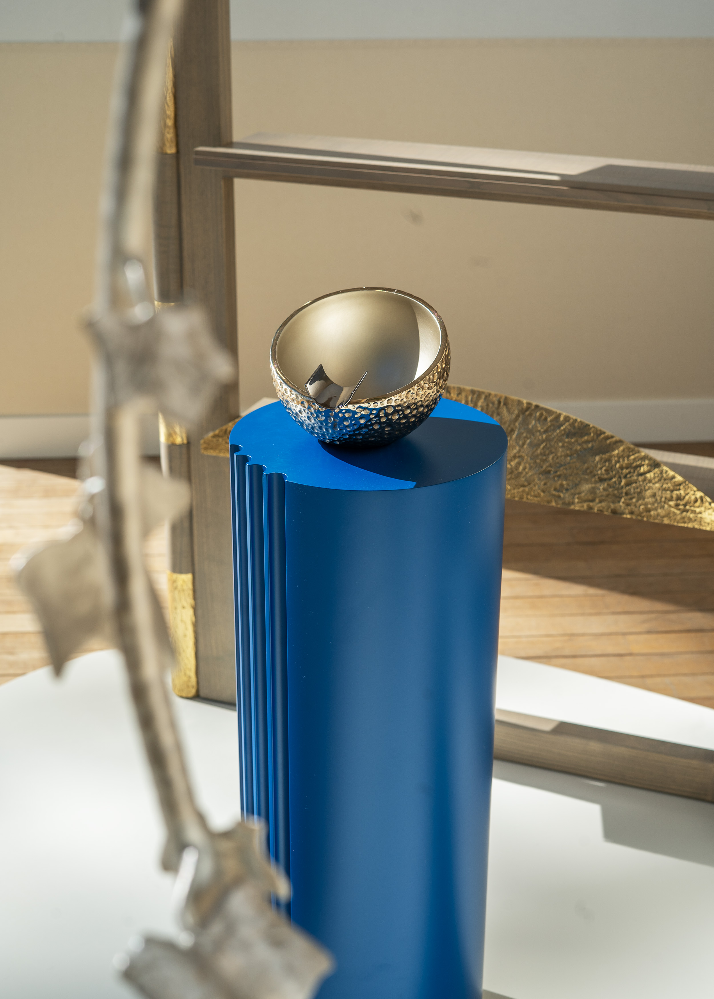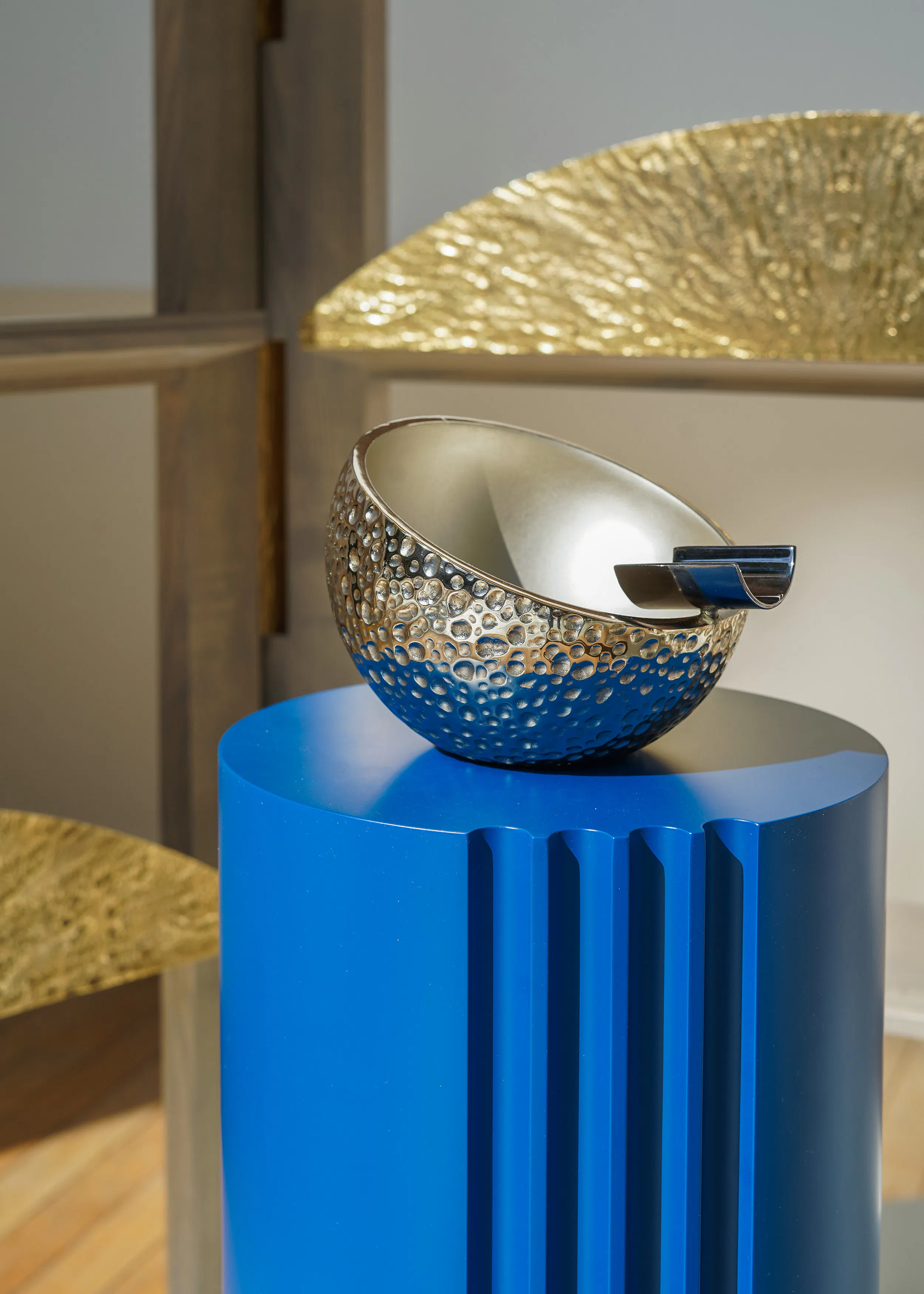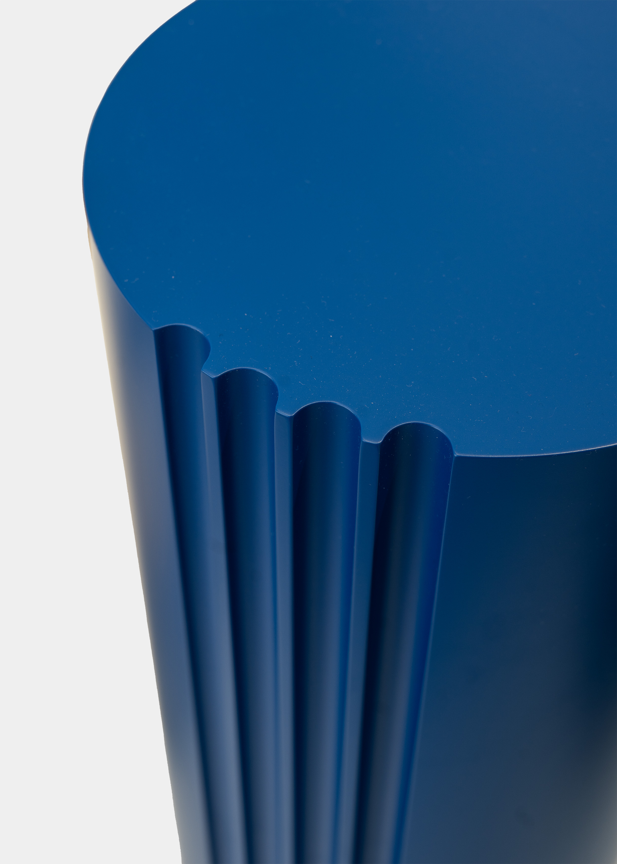 In a collection that makes many nods to antiquity, the end table is designed as an aesthetic homage to Greek columns. In a contemporary twist, only four flutes adorn column’s exterior, offering a minimalist ornamental look in a highly expressive color.