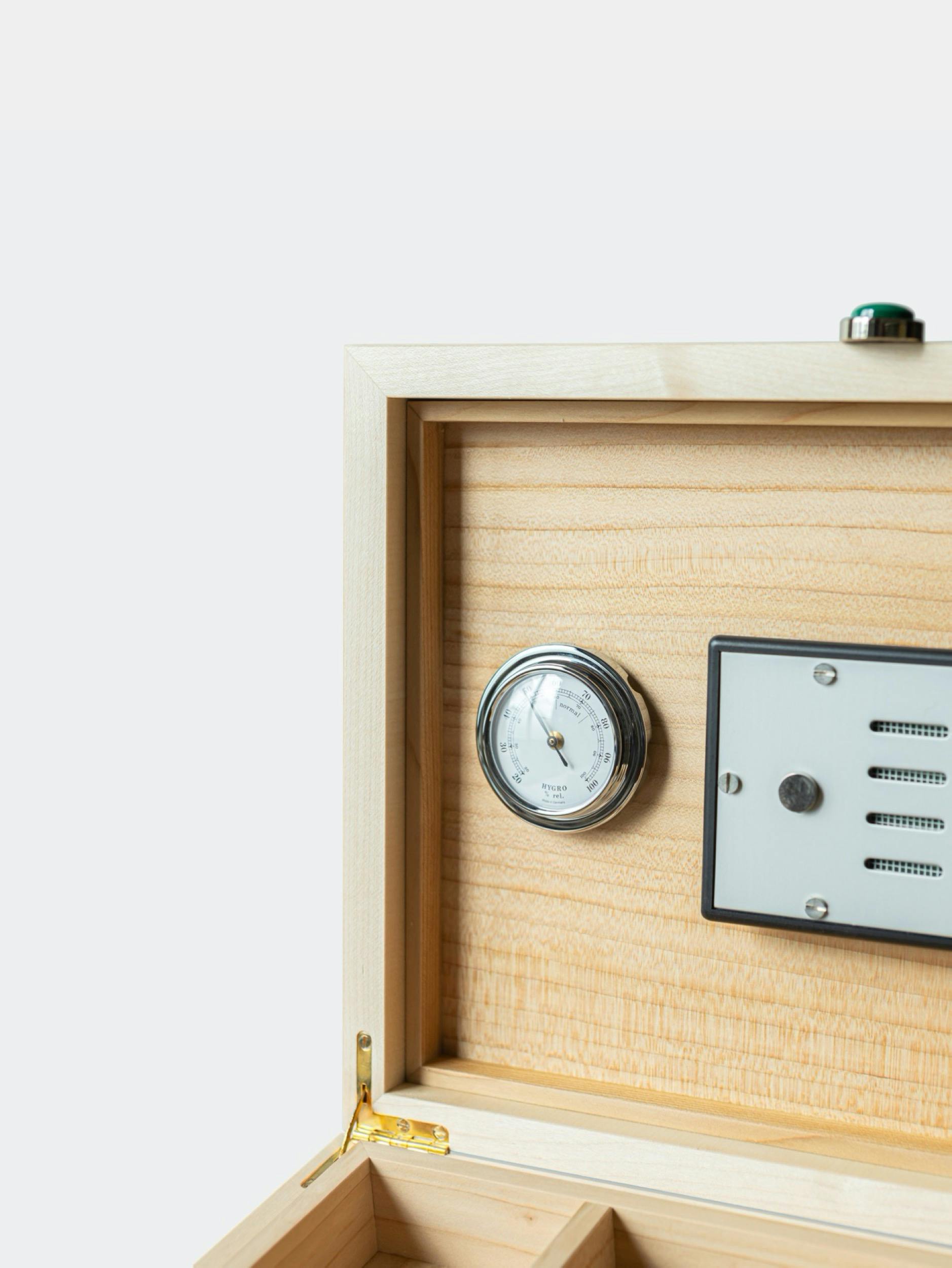 The Hébé collection’s cigar humidor is a miniature showcase, adorned with the face of the Greek goddess in the aesthetics of an artistic sketch. It is also available in a jewelry box version. This piece is handcrafted in the Rinck workshops in France.