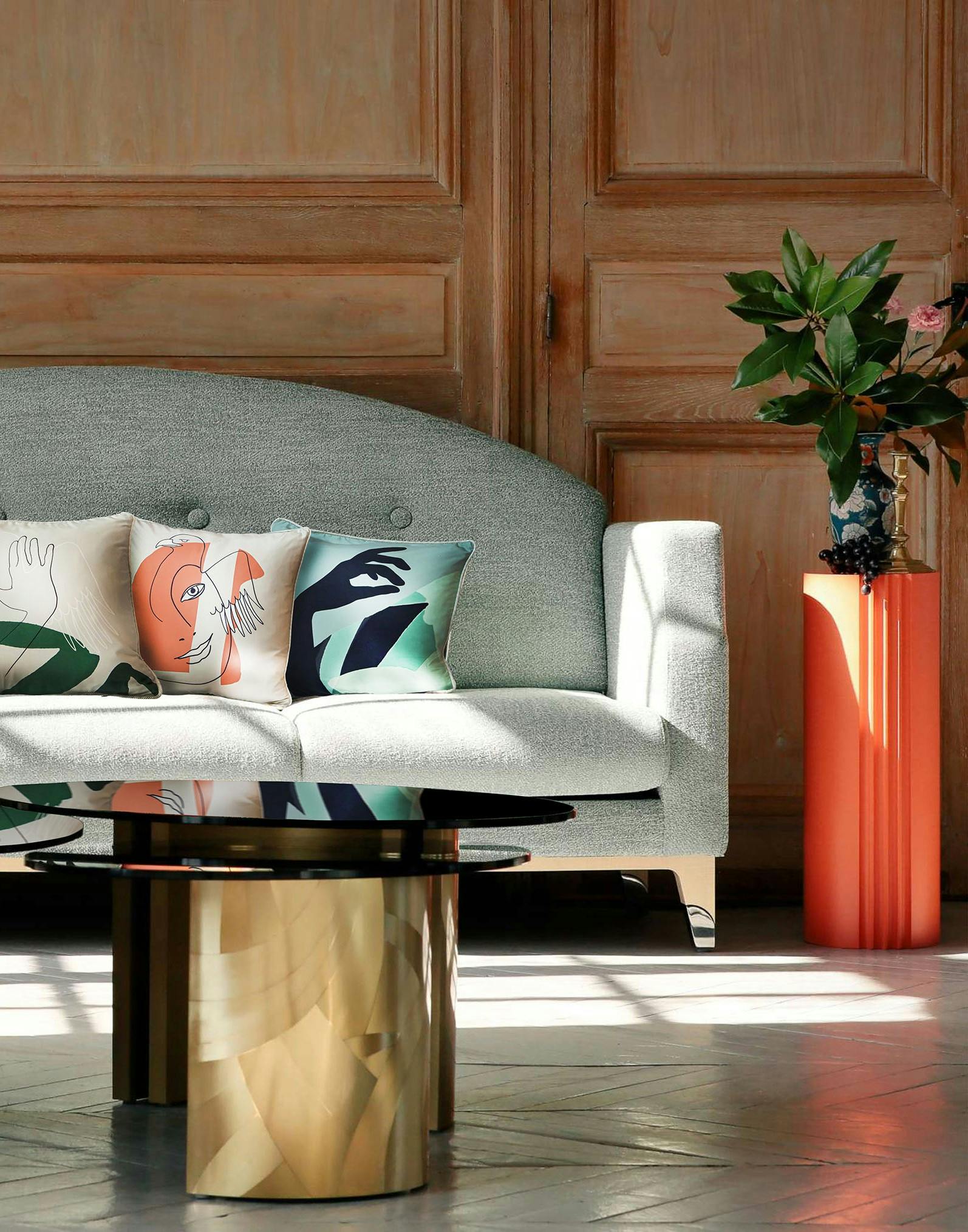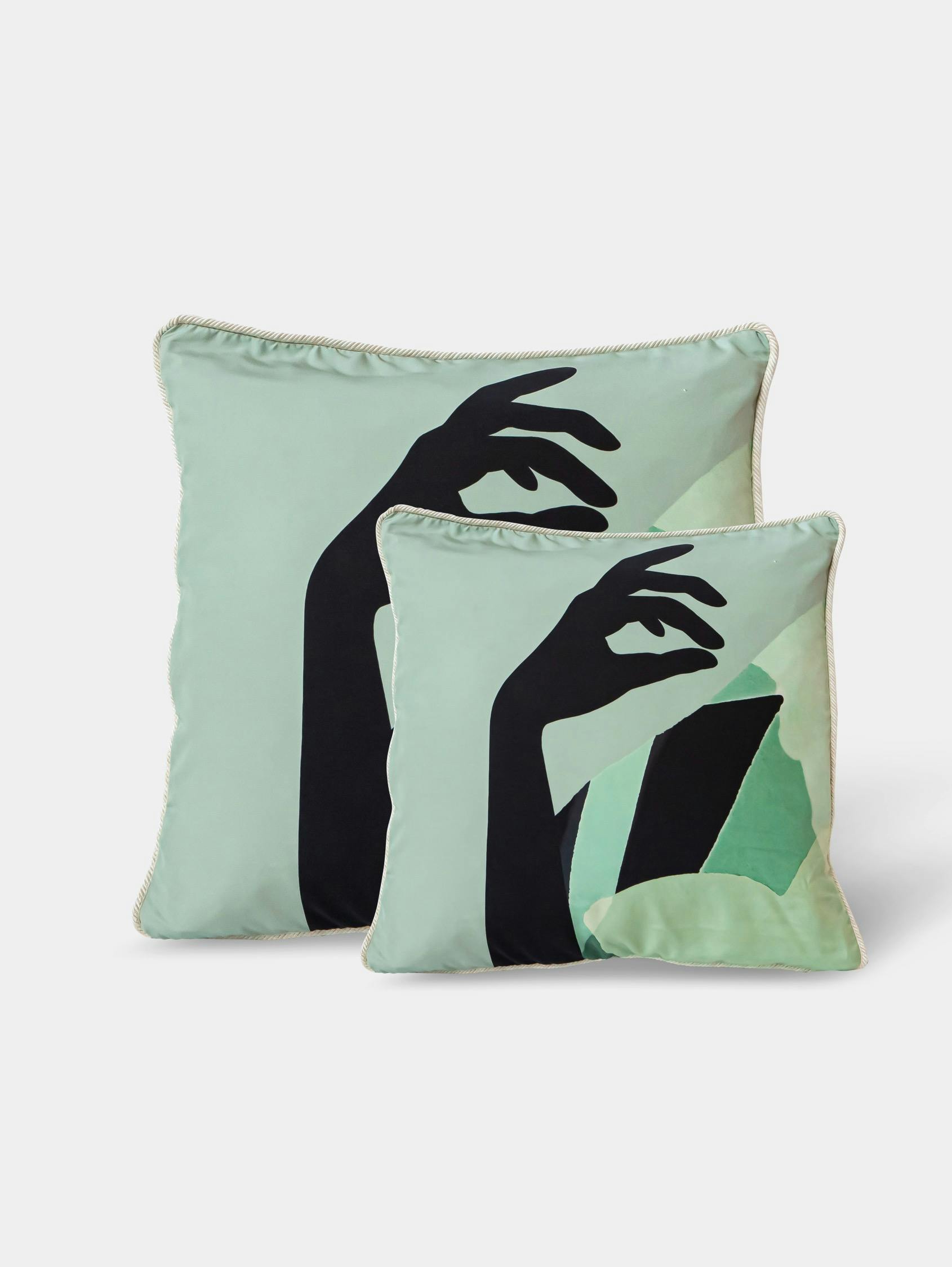 These cushions, designed to coordinate with the collection’s sofa and armchair, reflect the full ornamental language associated with the goddess Hebe, symbolizing the youth and eternity of the gods of Olympus. As the daughter of Zeus, her attributes include her father’s eagle; she is also accompanied by the Three Graces, as in the prologue ofThe Festivities of Hebe, the 18th-century work by French composer Jean-Philippe Rameau, which portrays Hebe’s celebratory feast.