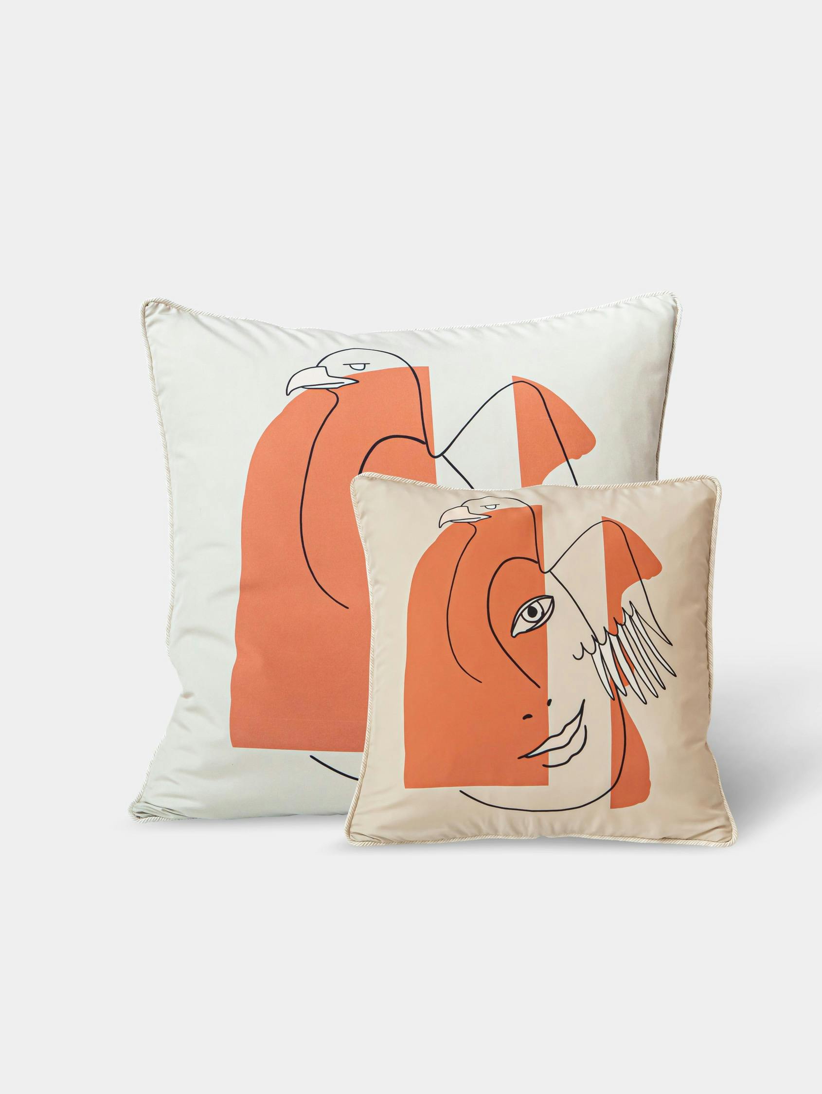 These cushions, designed to coordinate with the collection’s sofa and armchair, reflect the full ornamental language associated with the goddess Hebe, symbolizing the youth and eternity of the gods of Olympus. As the daughter of Zeus, her attributes include her father’s eagle; she is also accompanied by the Three Graces, as in the prologue ofThe Festivities of Hebe, the 18th-century work by French composer Jean-Philippe Rameau, which portrays Hebe’s celebratory feast.