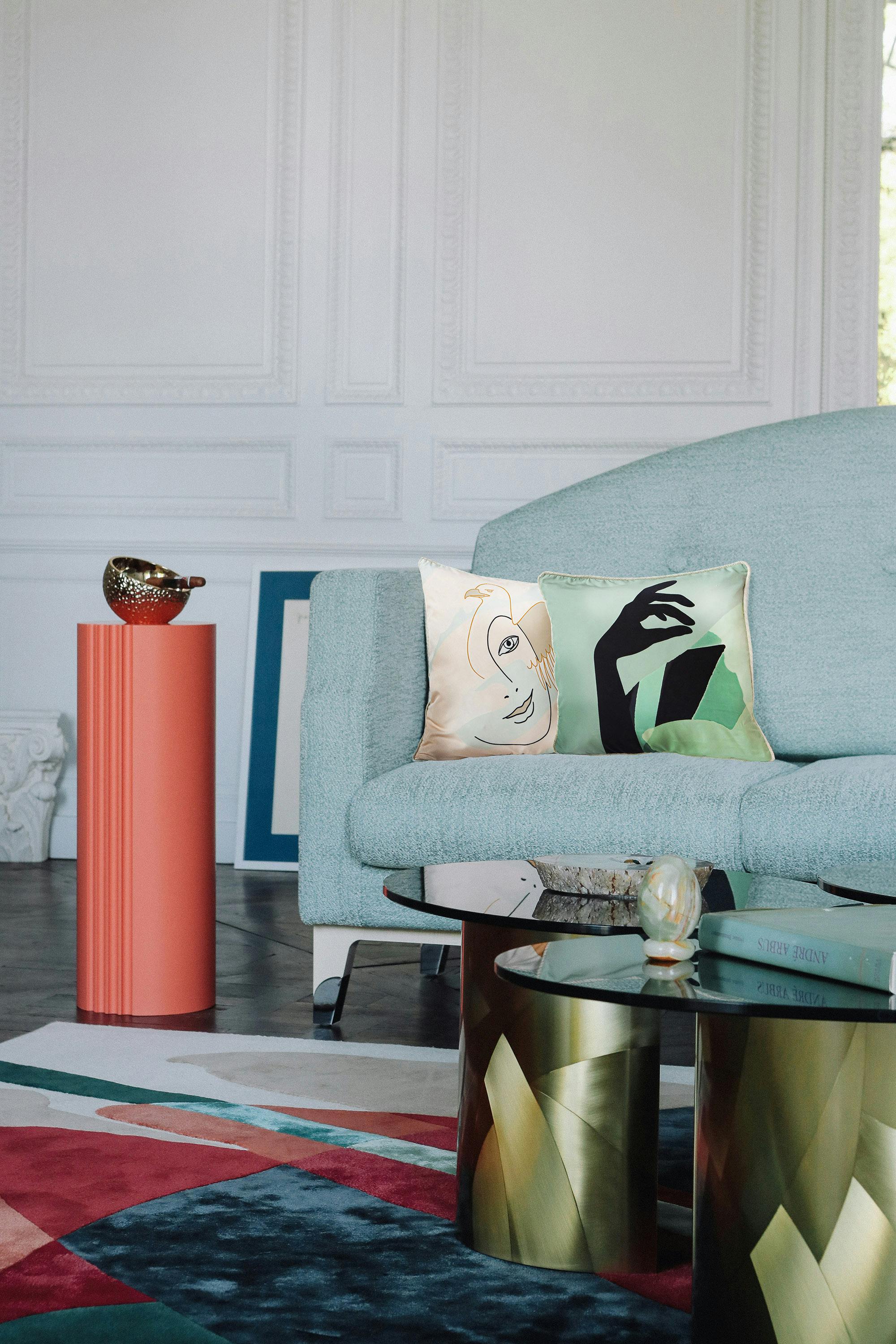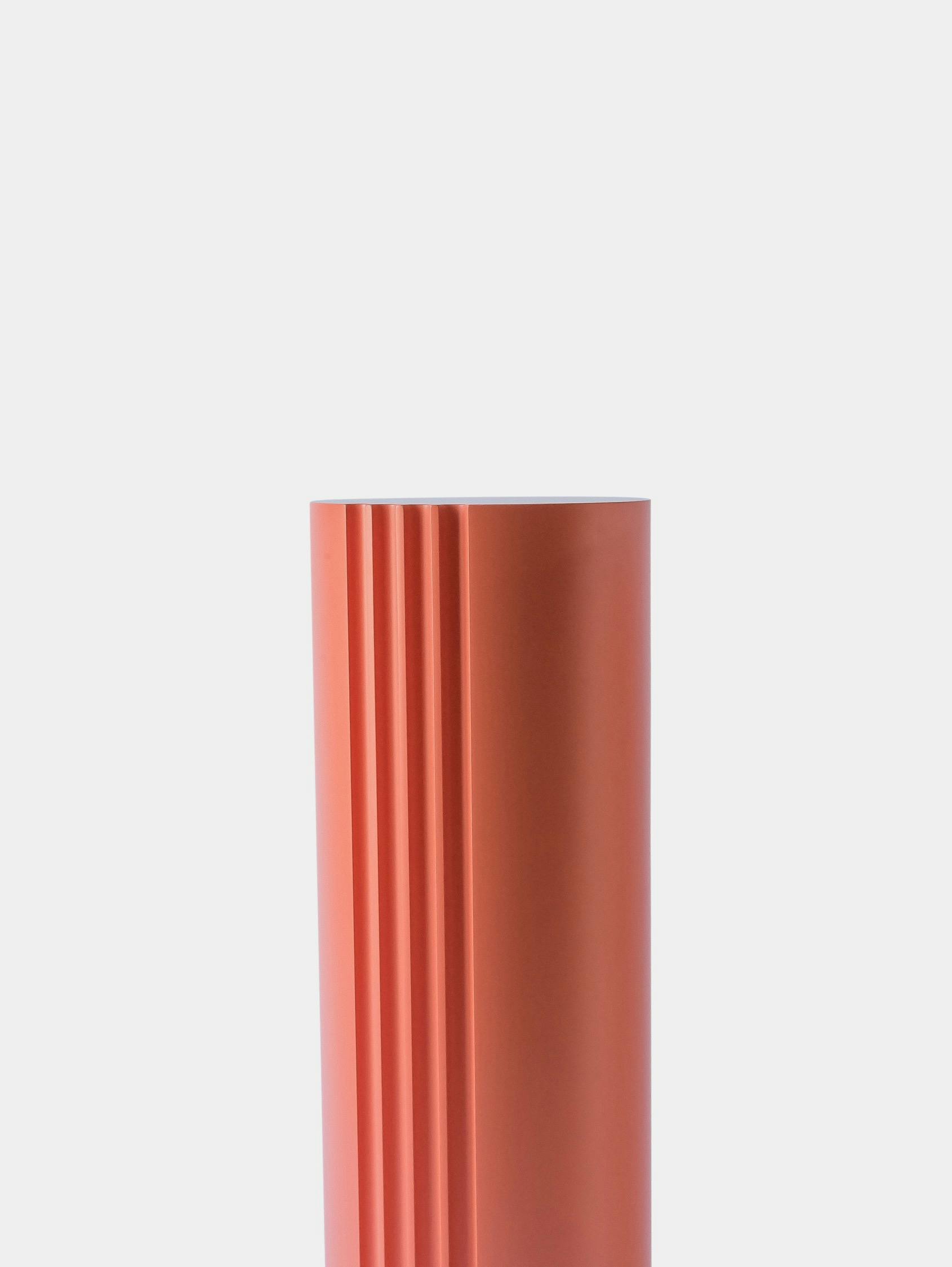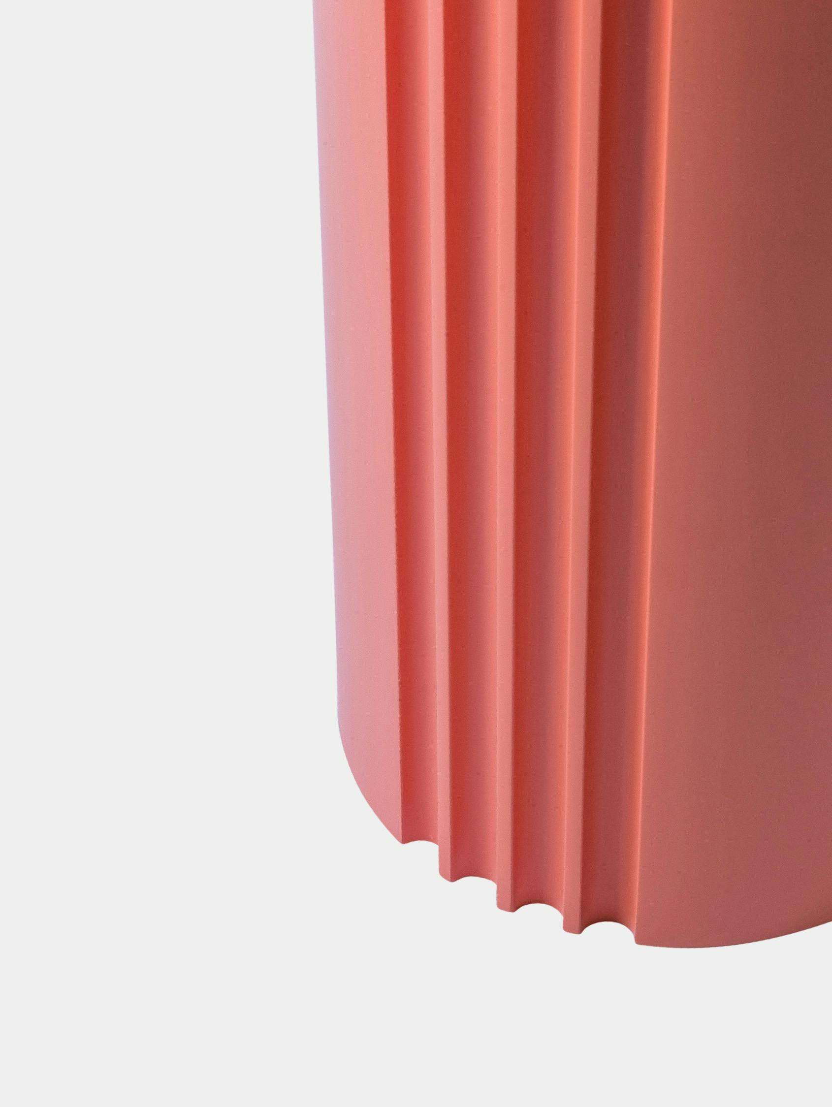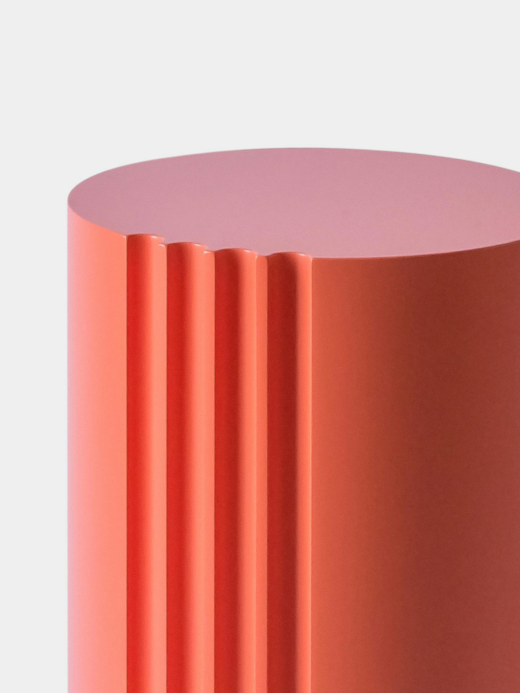 In a collection that makes many nods to antiquity, the end table is designed as an aesthetic homage to Greek columns. In a contemporary twist, only four flutes adorn column’s exterior, offering a minimalist ornamental look in a highly expressive color.