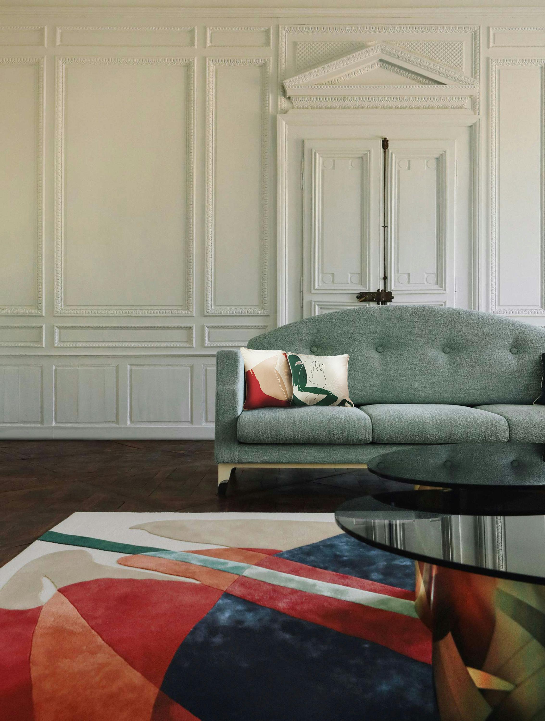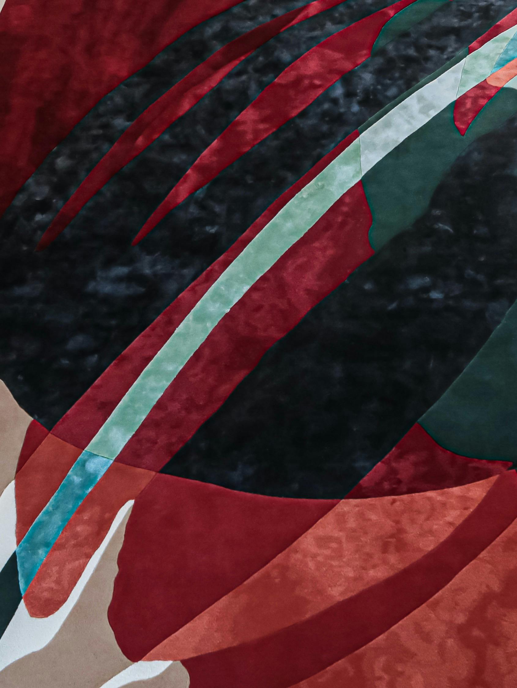 In abstract homage to the ornamental symbols of Olympus gracing the Hébé collection, the rug presents a poetic vision in myriad hues. Tones and semitones perform a delicate dance, combining to create a harmonious composition, expressed through the artistry of our craftspeople in an explosion of color.