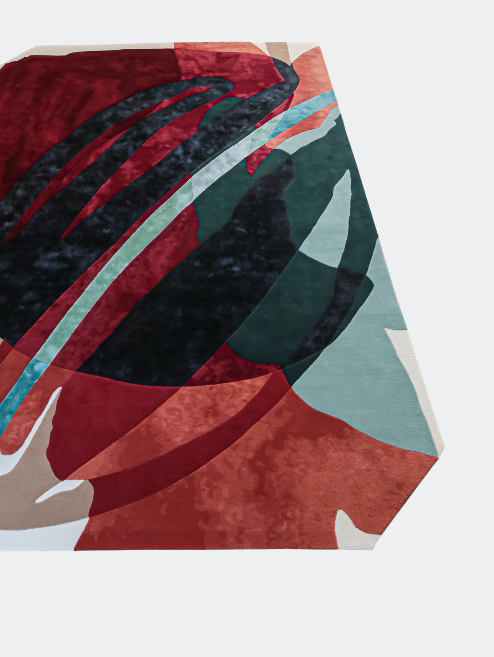 In abstract homage to the ornamental symbols of Olympus gracing the Hébé collection, the rug presents a poetic vision in myriad hues. Tones and semitones perform a delicate dance, combining to create a harmonious composition, expressed through the artistry of our craftspeople in an explosion of color.