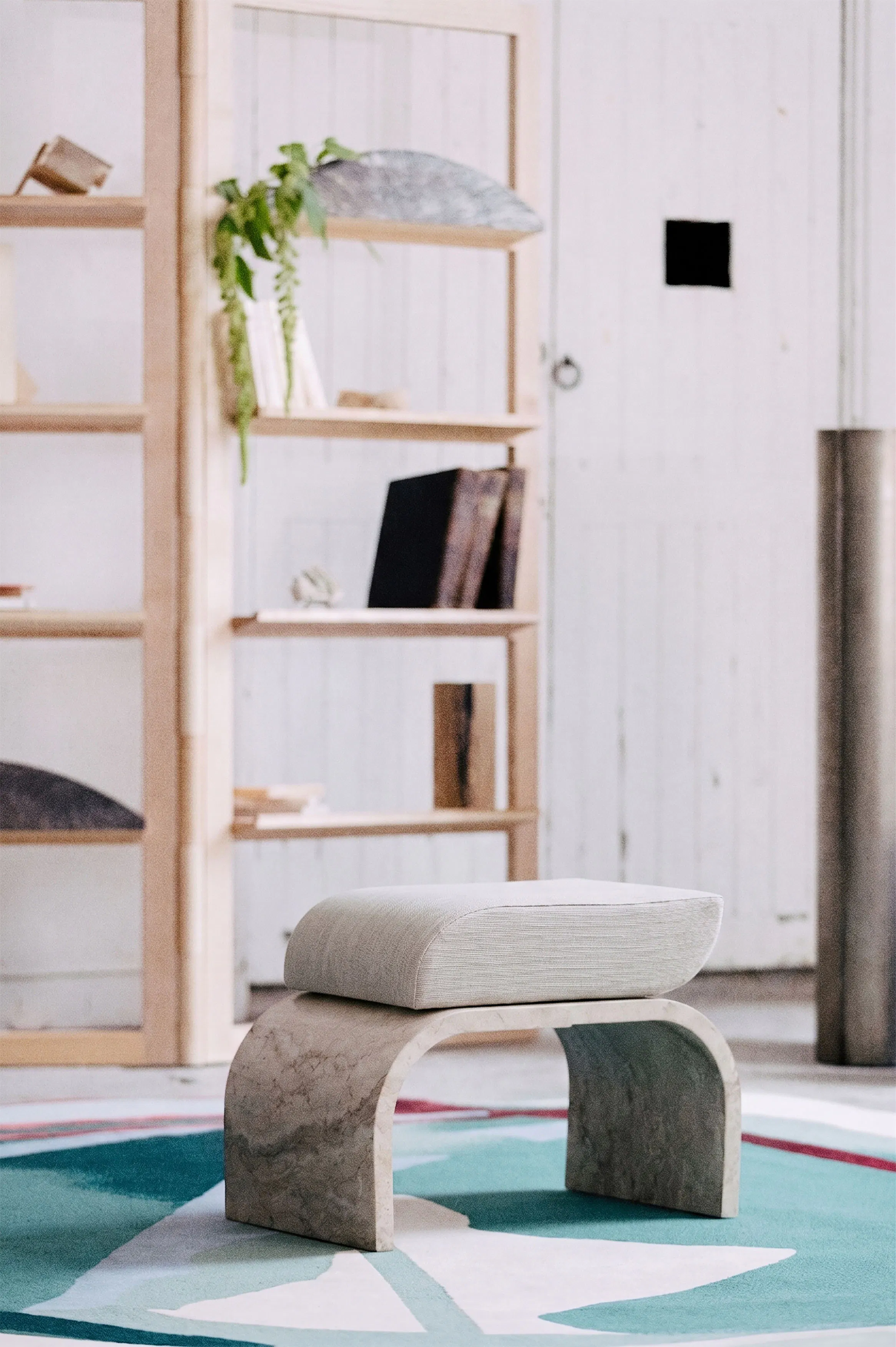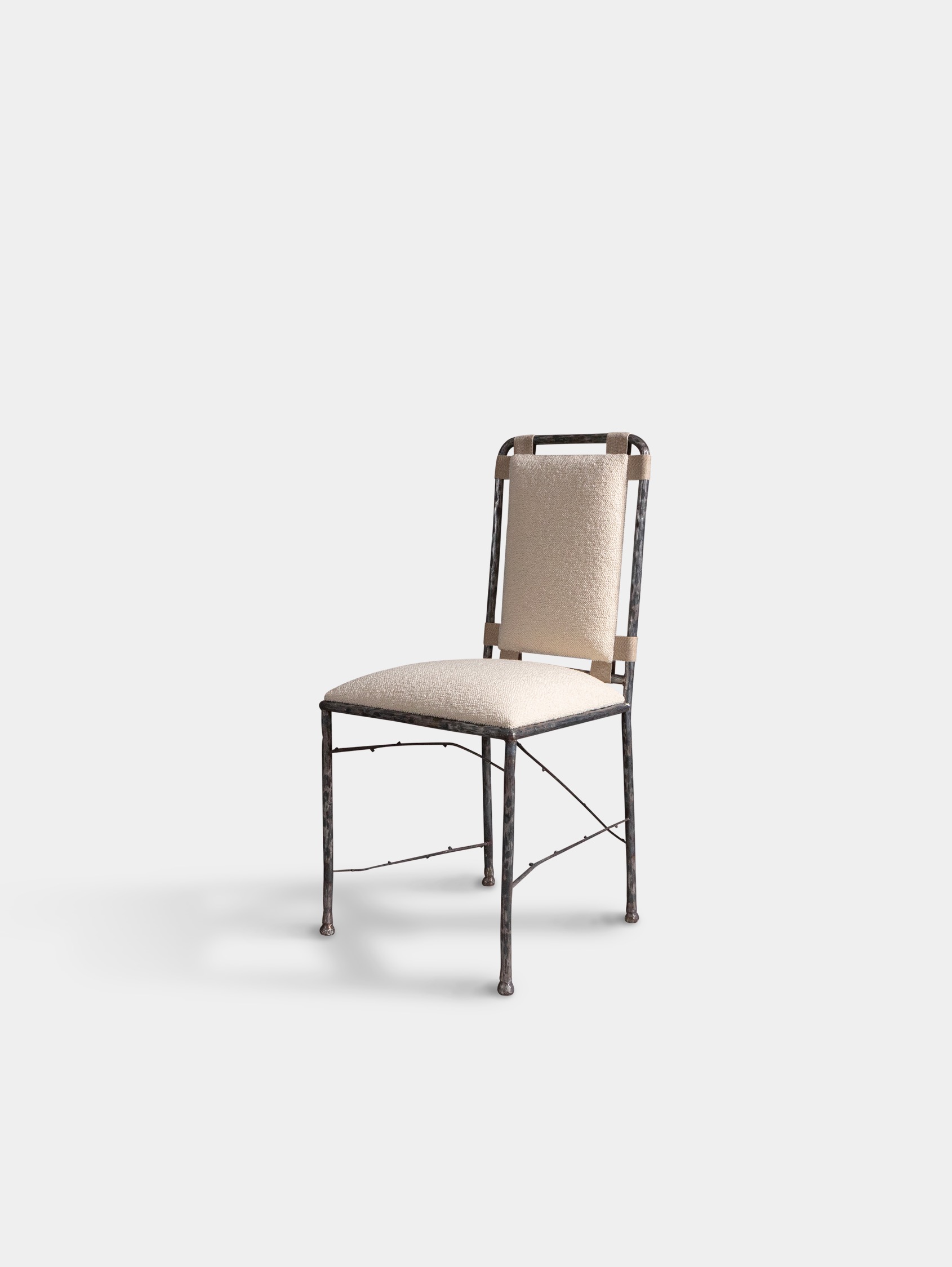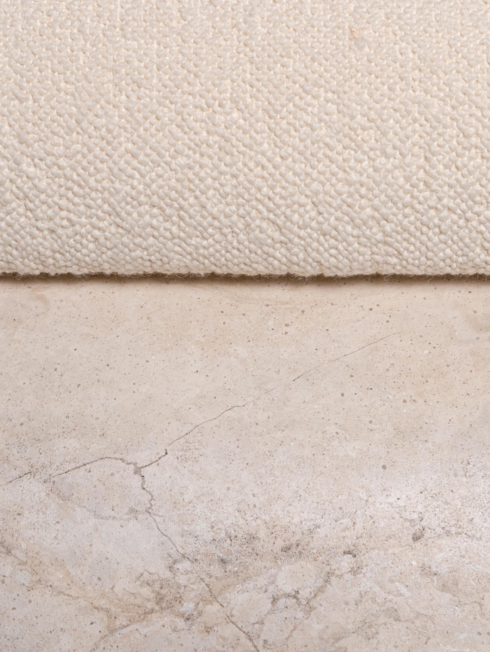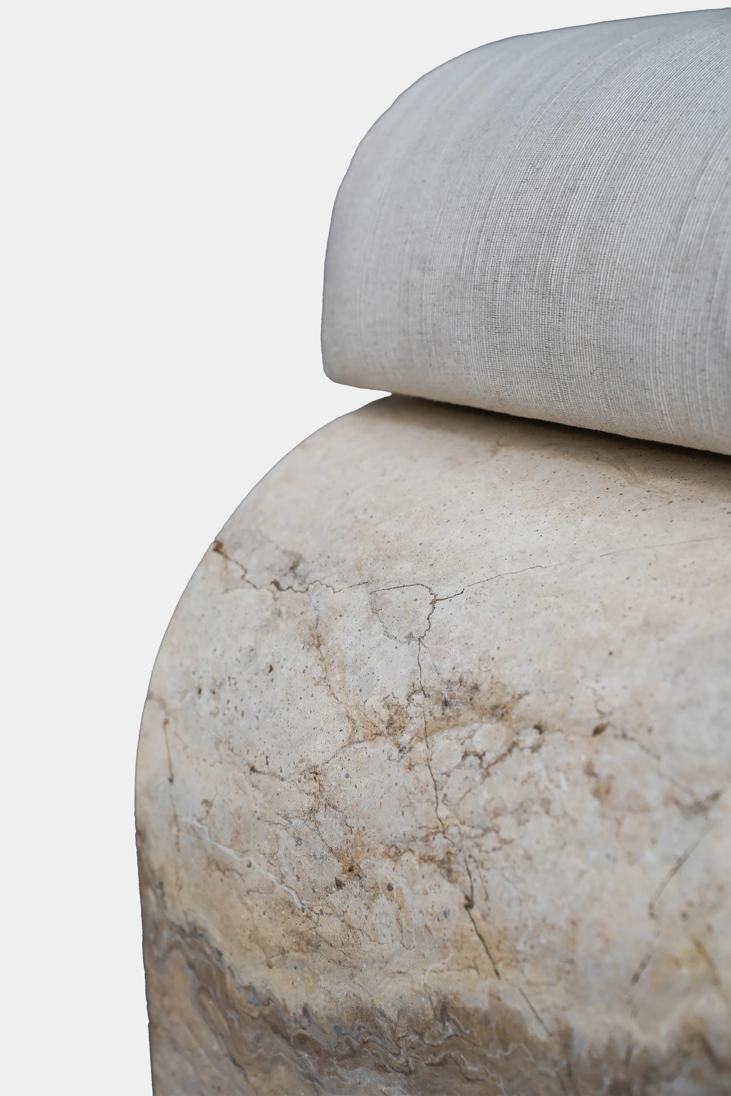 A work of curves and rounded lines, the ottoman of the Amarante collection invites you to relax and daydream. While the base resembles the Perlato d’Olympe marble chosen for the Amarante collection’s desk, it is, in fact, a «trompe l’oeil» hand painted on wood, so the piece can be easily lifted and moved about the room. The thick cushioning ensures tremendous comfort, whether used as a convenient seat or as a footrest for stretching out your legs. It is upholstered in Eveil fabric from Rinck’s first textile collection.