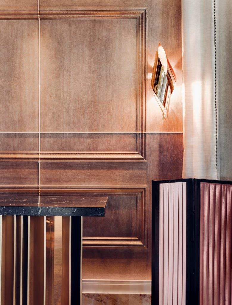 Rinck imagined the VIP lounge for the Longines Masters. A “gentleman’s club” atmosphere expressed in classic and contemporary boiserie and flannel curtains, echoing the “couture” elegance of equestrian sports.