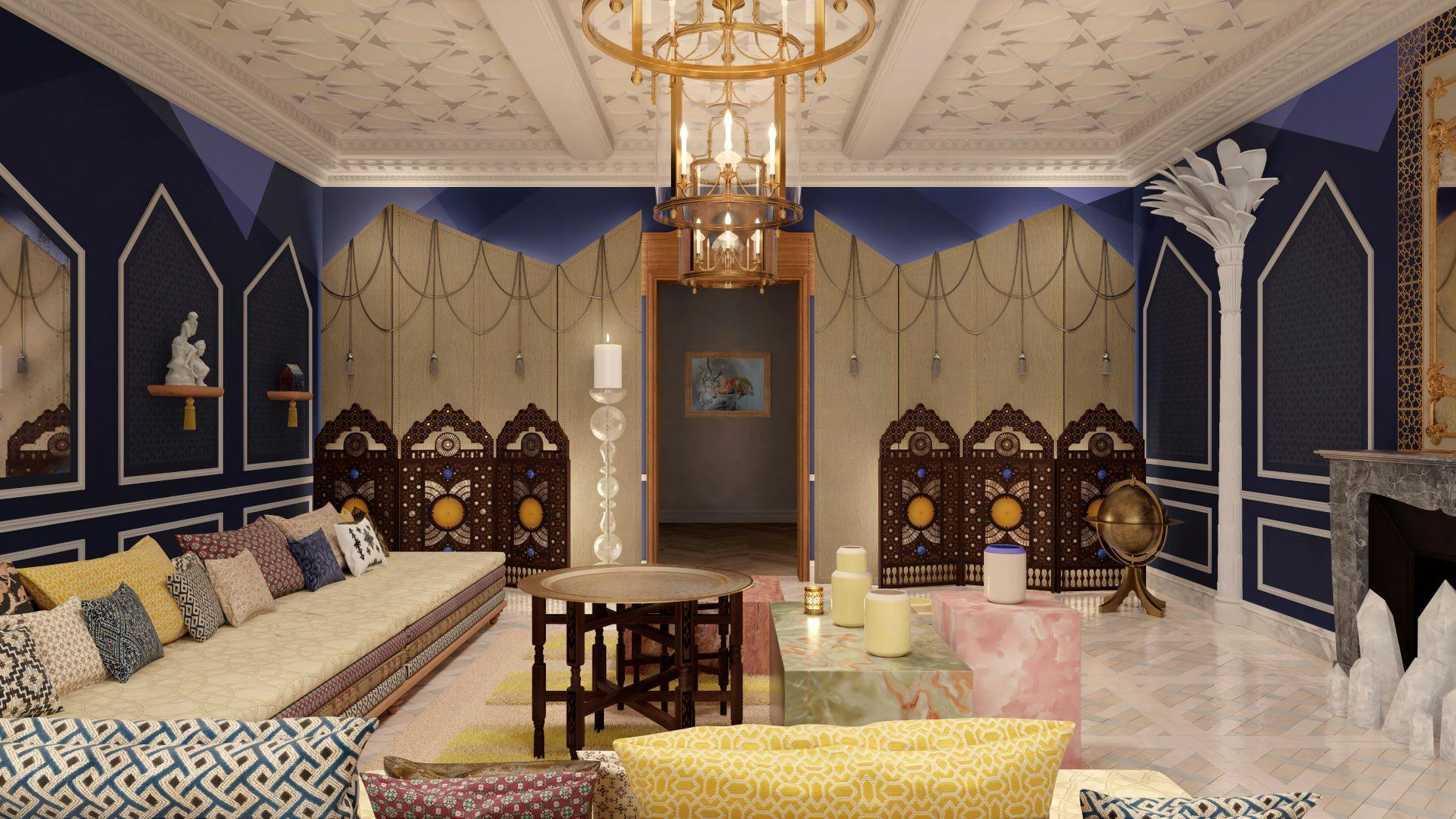Ce projet de décor intérieur imagine le salon de Marie-Anne de Bourbon dite Mademoiselle de Blois et fille de Louis XIV si elle avait été donné en mariage au Sultan marocain Moulay Ismaïl suite à sa proposition en 1699.