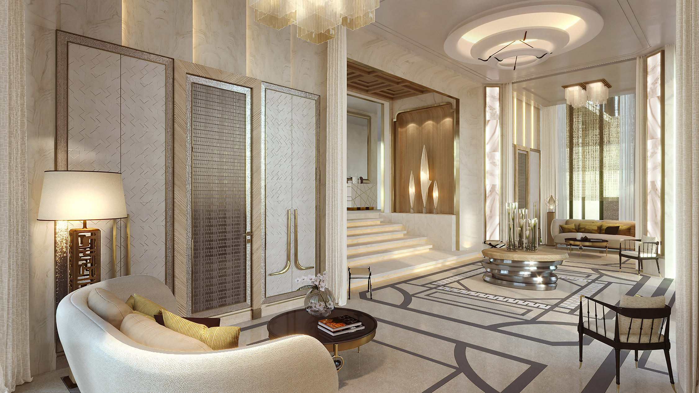 Etudes d'intérieur contemporain avec des inspirations Art Déco réalisées par Rinck pour un projet résidentiel.