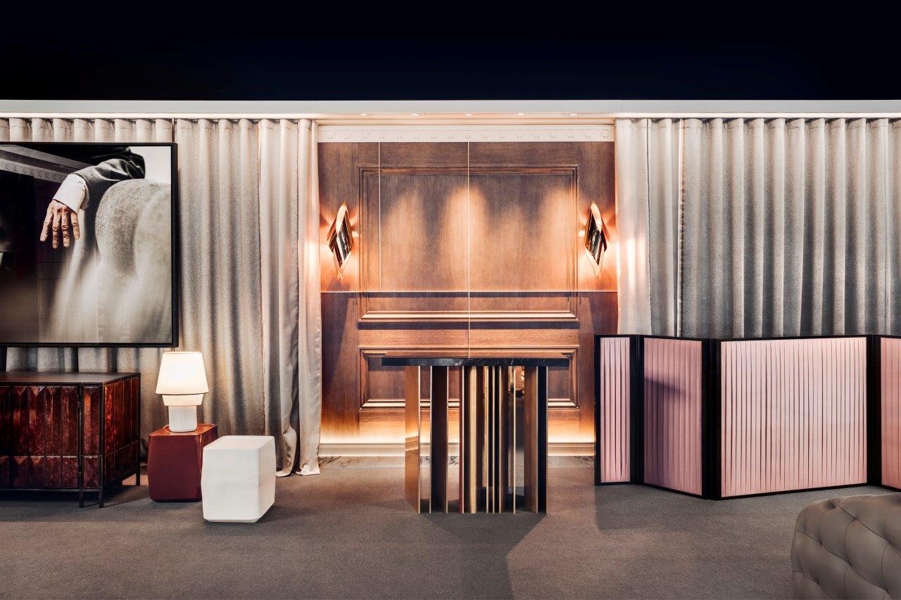 Rinck imagine l'intérieur haut en couleur d’un collectionneur exubérant et présente notamment la nouvelle addition à la collection Félicité, un lustre en laiton, ainsi que sa nouvelle collaboration avec Fromental : le revêtement mural en soie peinte à la main, "The Classisict Sketchbook".