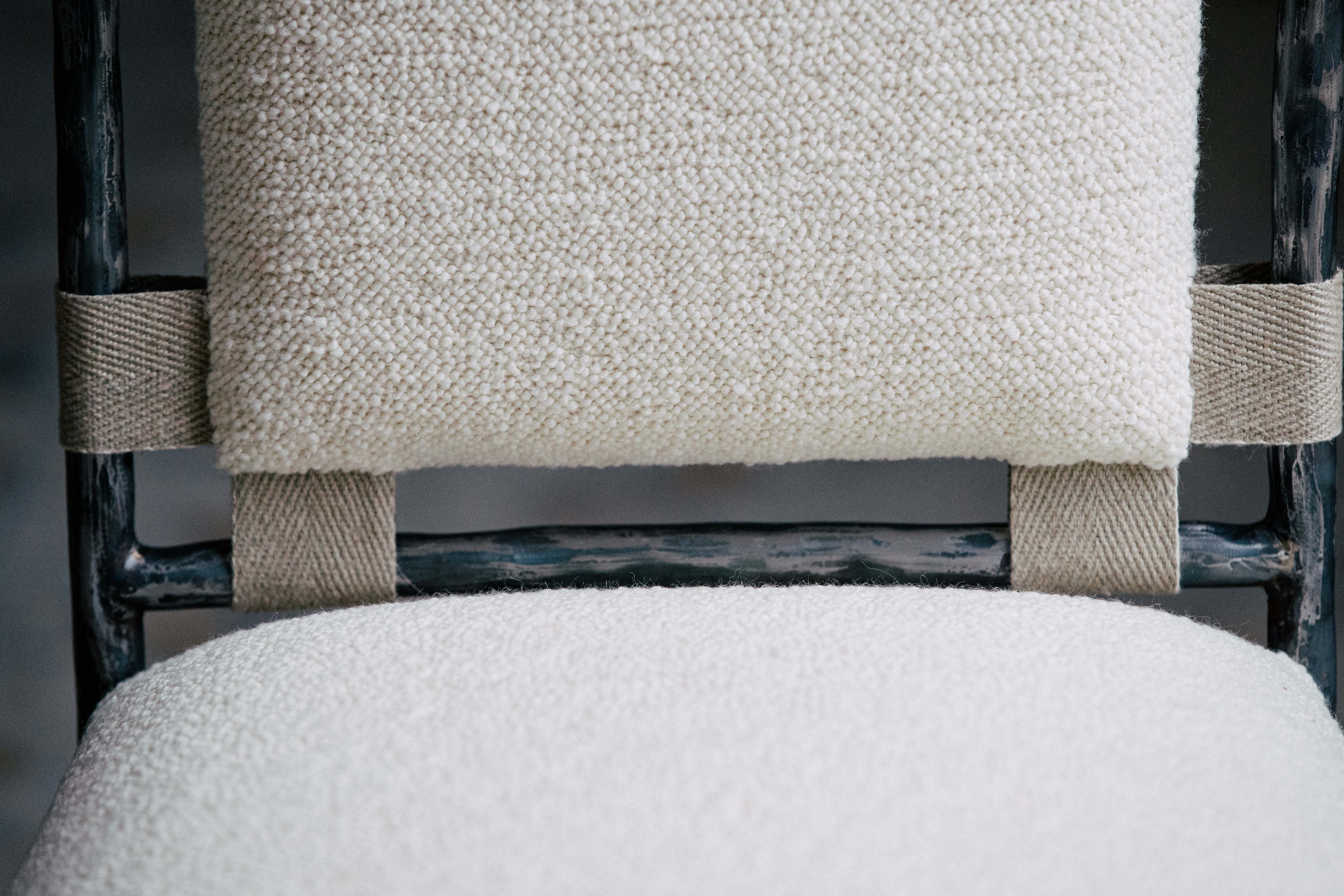 A la croisée de l’artisanat d’art et du design, la chaise Amarante est une pièce maîtresse de la collection. Sa structure tubulaire est en acier martelé qui lui donne cet aspect authentique et sa patine naturelle, comme un rappel du temps passé. Au-delà de l’esthétisme pur, cet alliage lui assure une parfaite stabilité et une grande durabilité. Son assise et son dossier bombés, sont tapissés avec le tissu Eveil de la première collection de textiles imaginée par Rinck pour Maison Thevenon. Techniquement complexe à réaliser, la chaise Amarante laisse une impression sculpturale forte qui en fait un ajout précieux à tout intérieur.