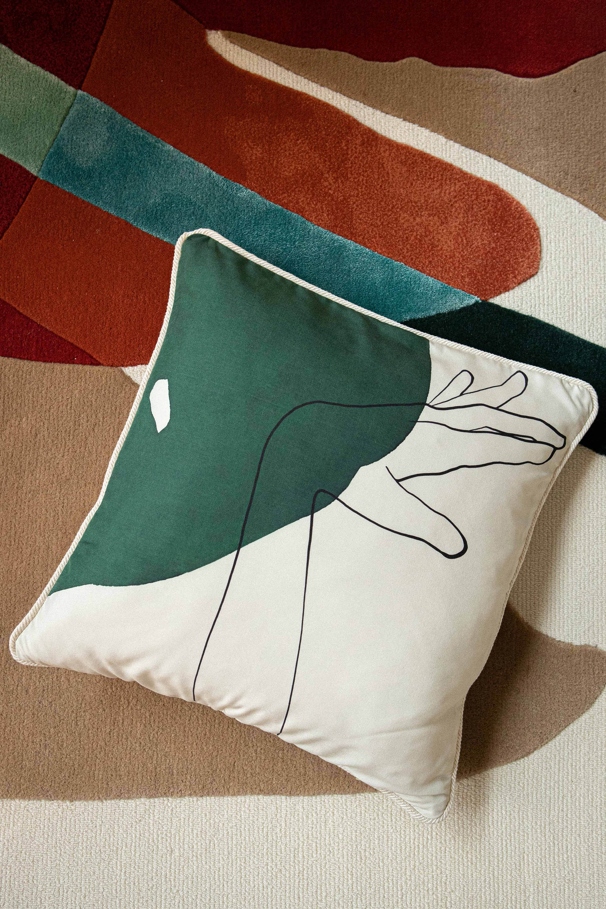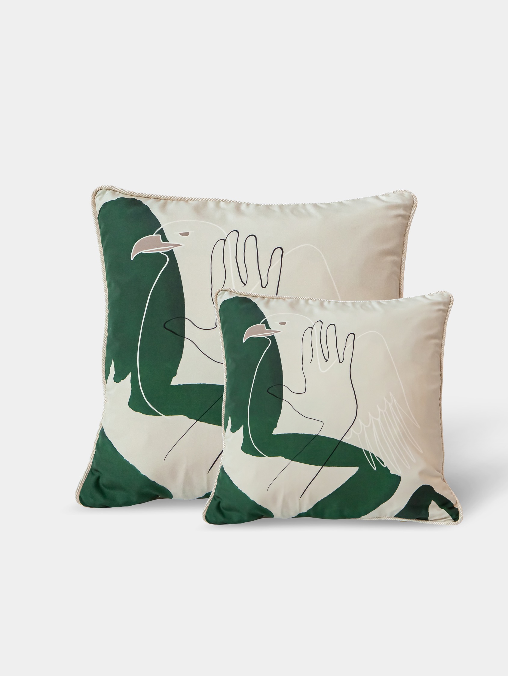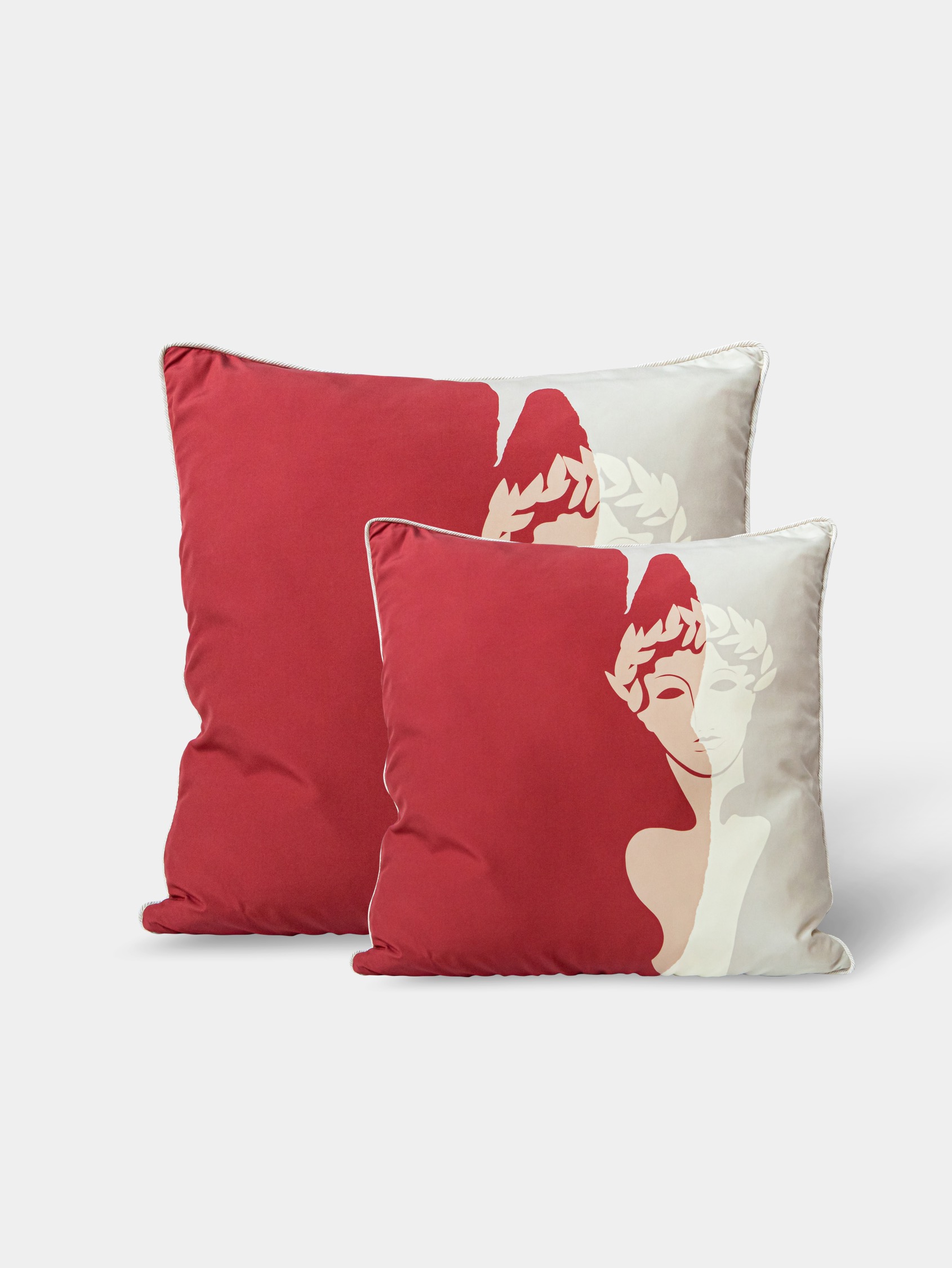 Pensés pour s’accorder avec le canapé et le fauteuil de la collection, les coussins déclinent l’ensemble du langage ornemental associé à la déesse Hébé, qui représente la jeunesse et l’éternité des Dieux de l’Olympe. Fille de Zeus, ses attributs comportent notamment l’aigle de son père, et elle est accompagnée par les muses, comme dans le livret des fêtes d’Hébé, opéra signé par Jean-Philippe Rameau au XVIIIe siècle.