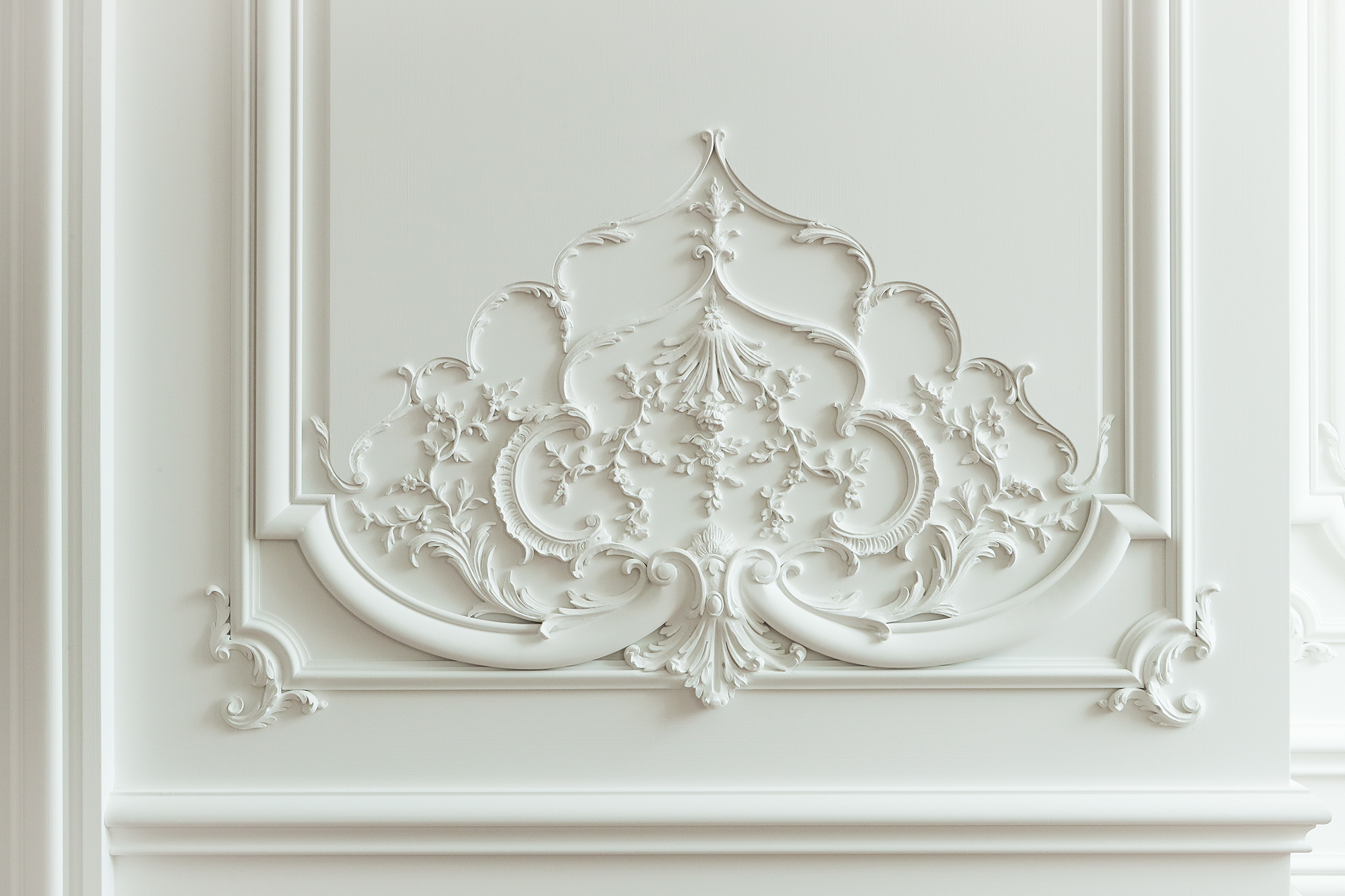 Création d'un décor intérieur complet de style Louis XV pour une résidence privée.